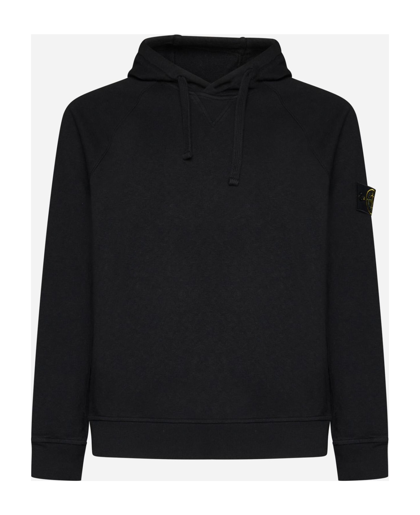 Stone Island's black cotton hoodie featuring a hood with adjustable drawstring, logo-label on the sleeve and ribbed edges. Composition: 100% cotton