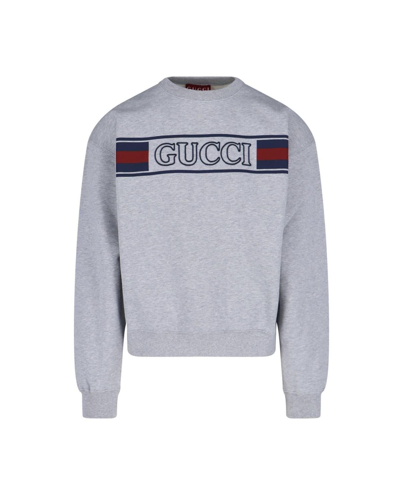 Gucci logo crewneck sweatshirt in gray cotton mélange, chest logo patch, ribbed trim, straight hem. 100% cotton