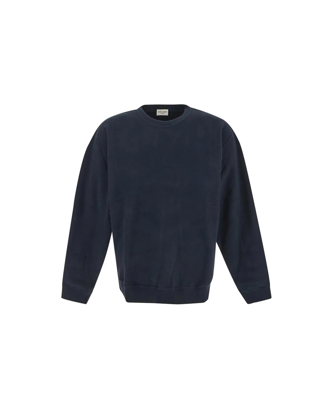 Saint Laurent crewneck sweatshirt in petrol blue cotton with elastic waist and cuffs, embroidered tonal logo on back and 90's style fit Composition: COTTON