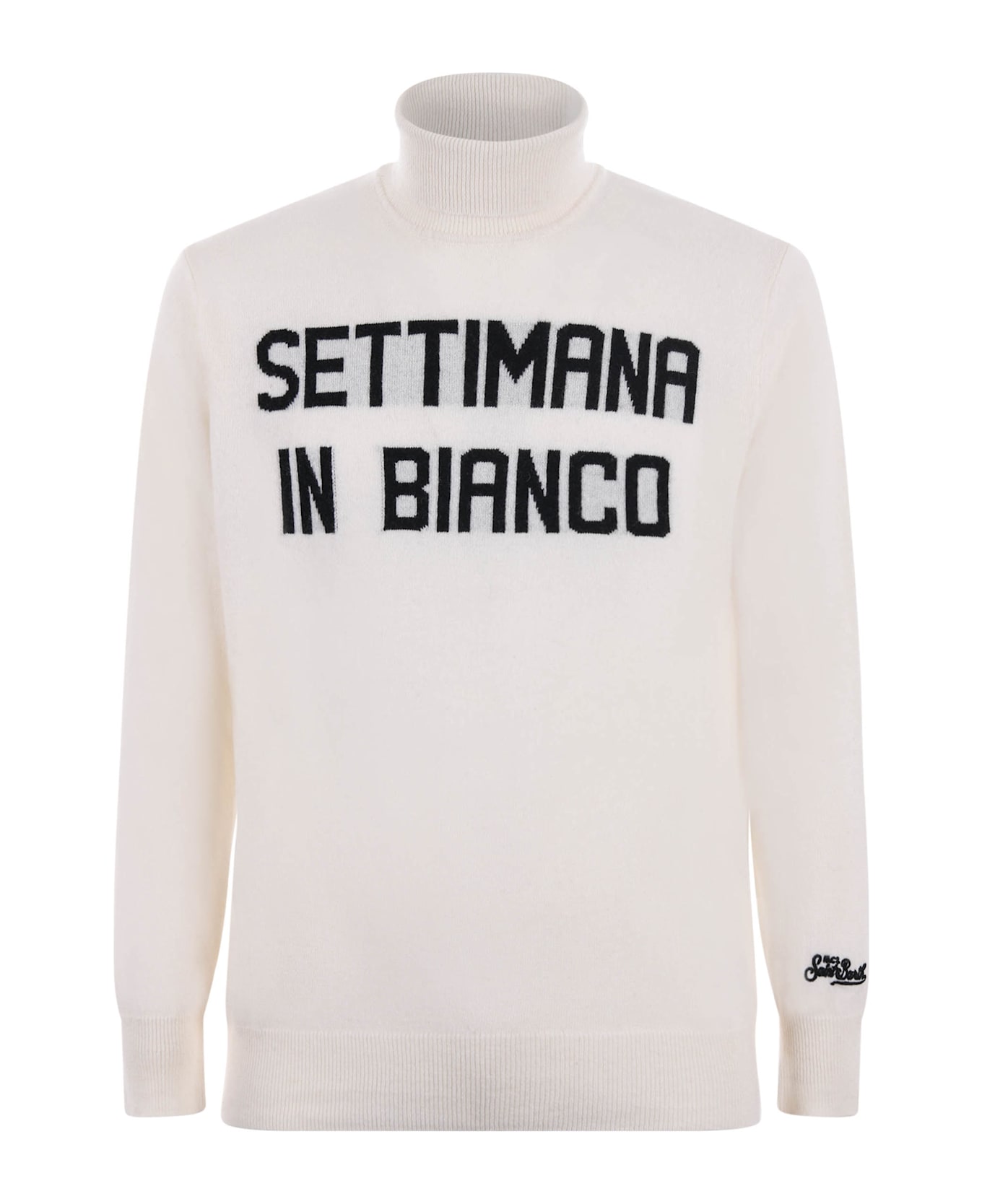 MC2 Saint Barth turtleneck in cream-colored wool and cashmere blend. High collar with turn-up. Front inlay. Ribbed cuffs and bottom. 35% wool, 30% viscose, 20% cashmere, 15% polyamide Composition: Misto Lana E Cashmere
