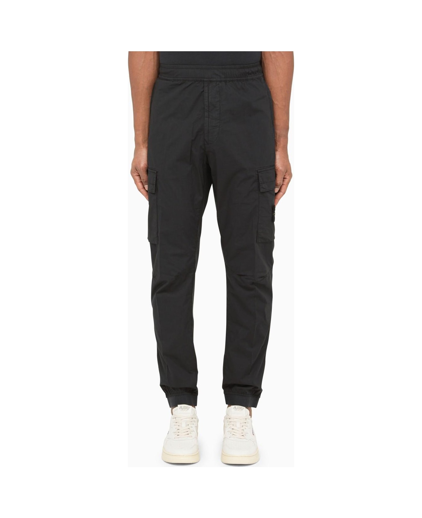 Stone Island blue cotton trousers, featuring two bellows pockets on the sides, welt pocket on the back, two side cargo pockets and removable patch. Composition: 97% Cotton - 3% Elastane