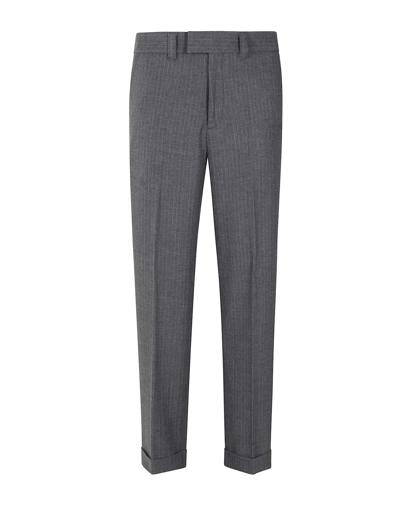 Pants - Paolo Pecora - Gray color - Pinstripe fabric - Waistband with belt loops - Regular leg - Turn-up hem - Hook and zipper front closure