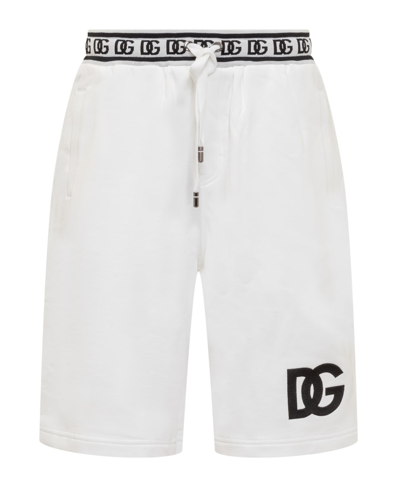White bermuda shorts. Drawstring waist. Elastic band with logo at the waist. Pockets on the sides. Zip pocket on the back. Composition: 100% Cotton