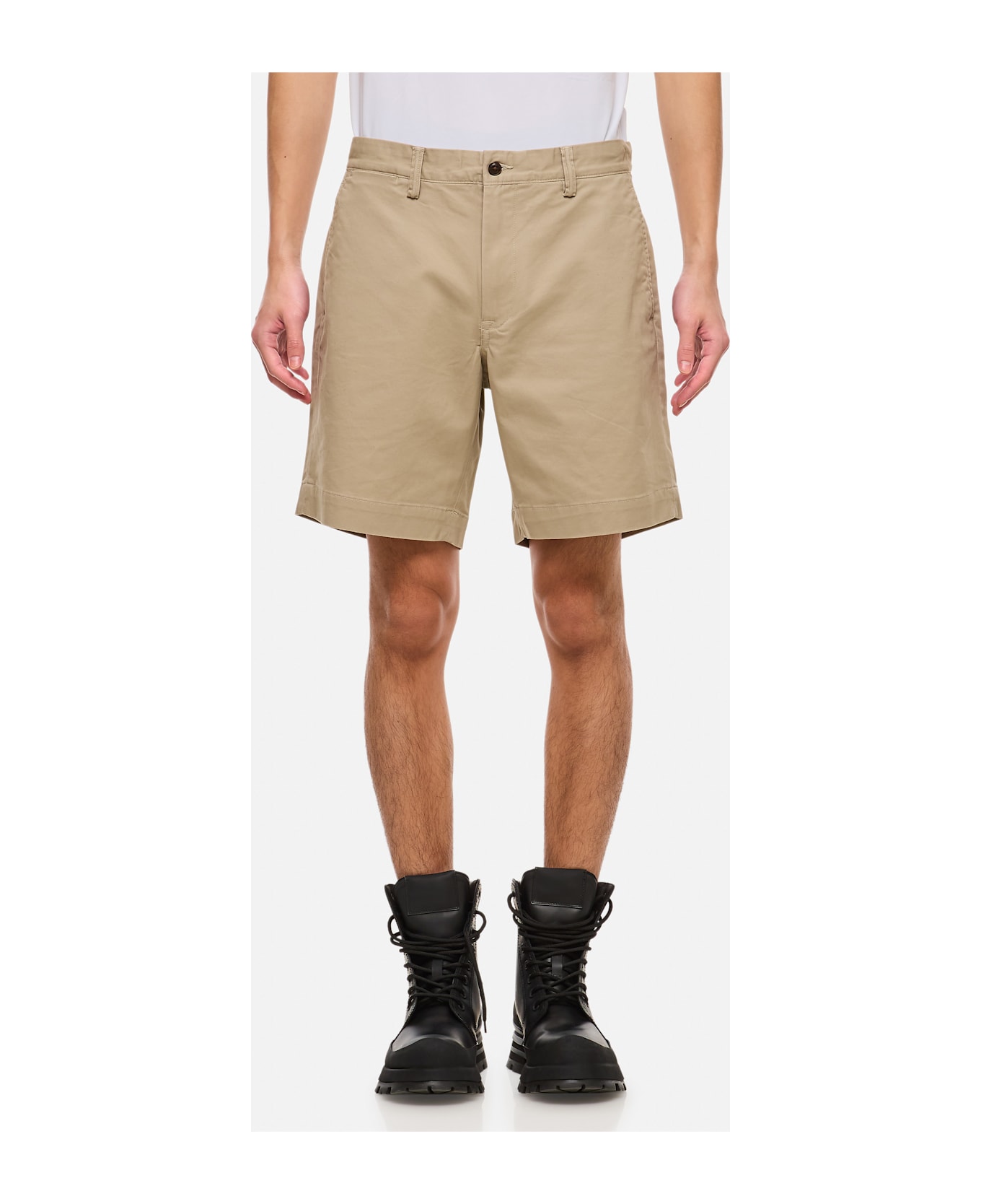 Frontal zip and button closure. Belt loops. Color: beige.