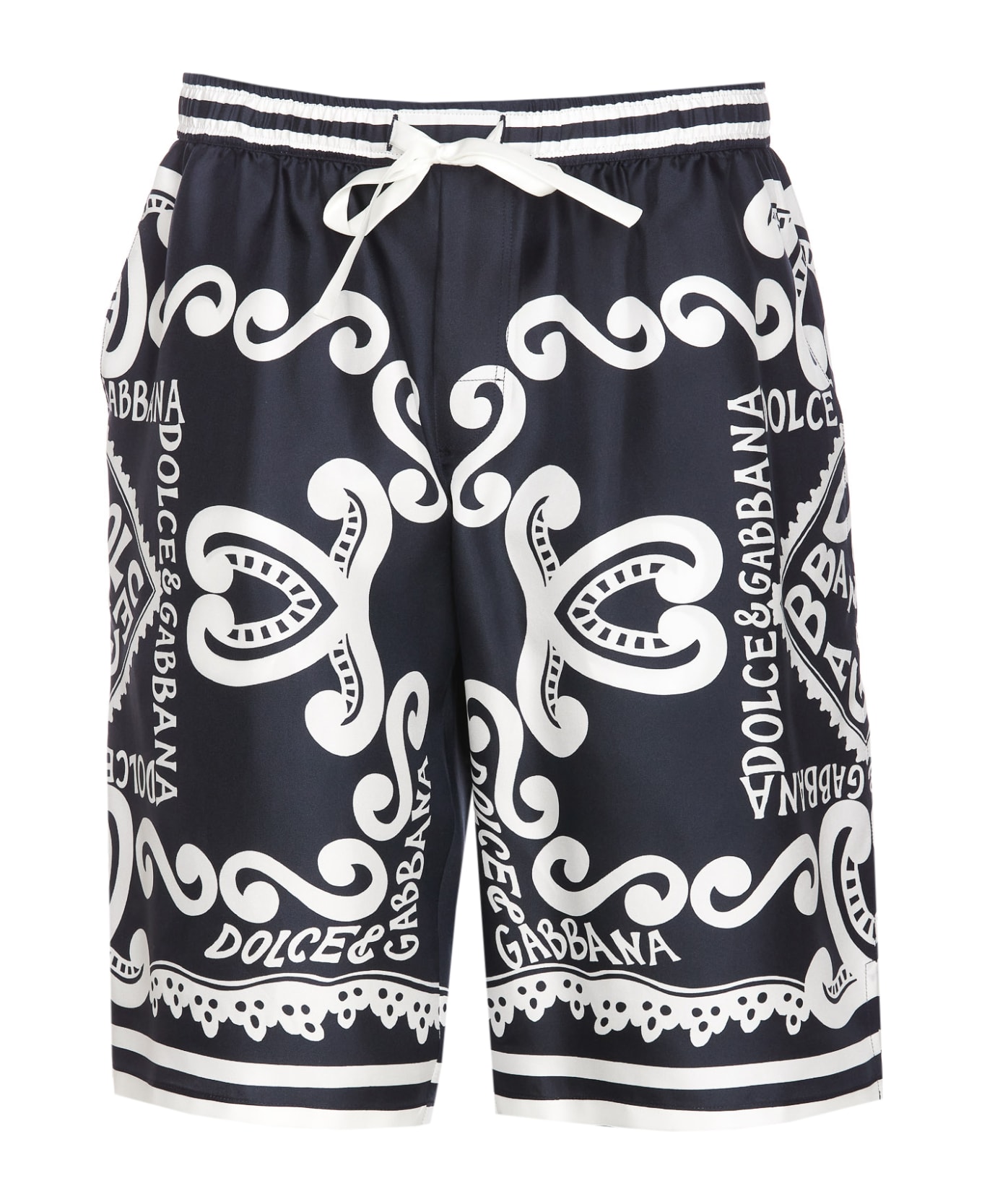 Dolce&Gabbana black Marina print shorts, all over print logo, coulisse closure, lateral pockets, Marina print Composition: 100% Silk
