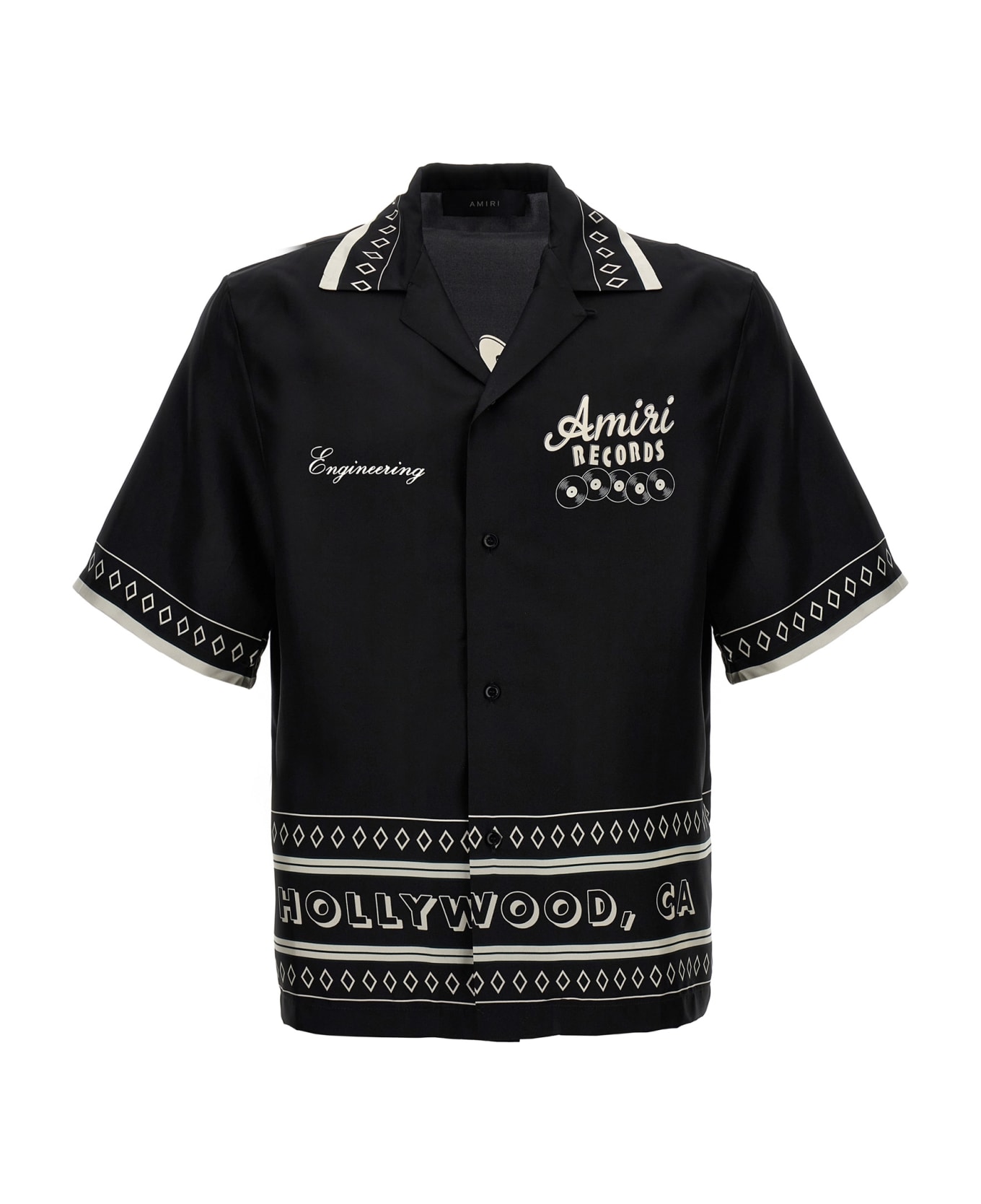 'Amiri Records' silk shirt with all-over print, button closure, short sleeves. Composition: 100% silk