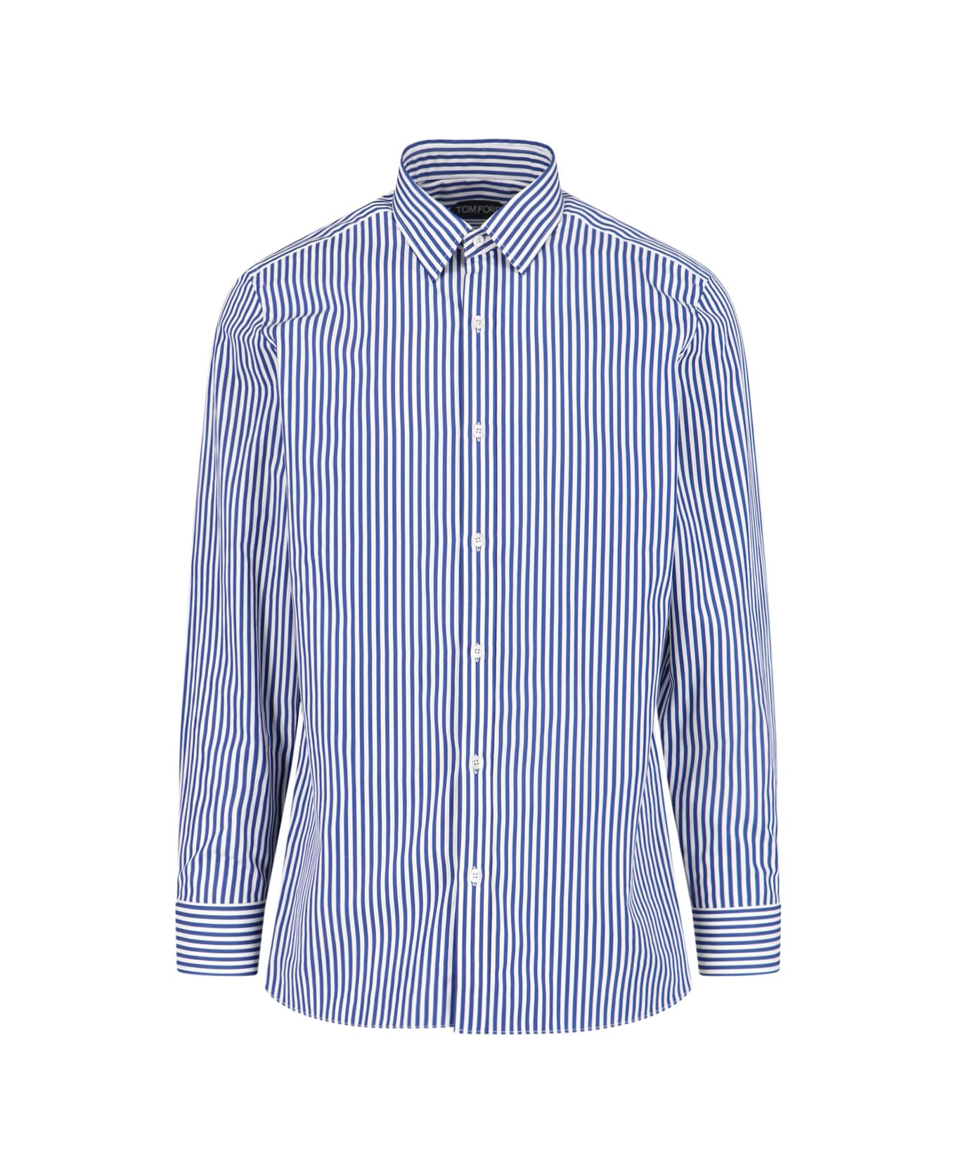 Tom Ford 'Bengal' blue and white cotton shirt with striped pattern, classic collar, button closure, button cuffs, curved hem. Composition: 100% Cotton