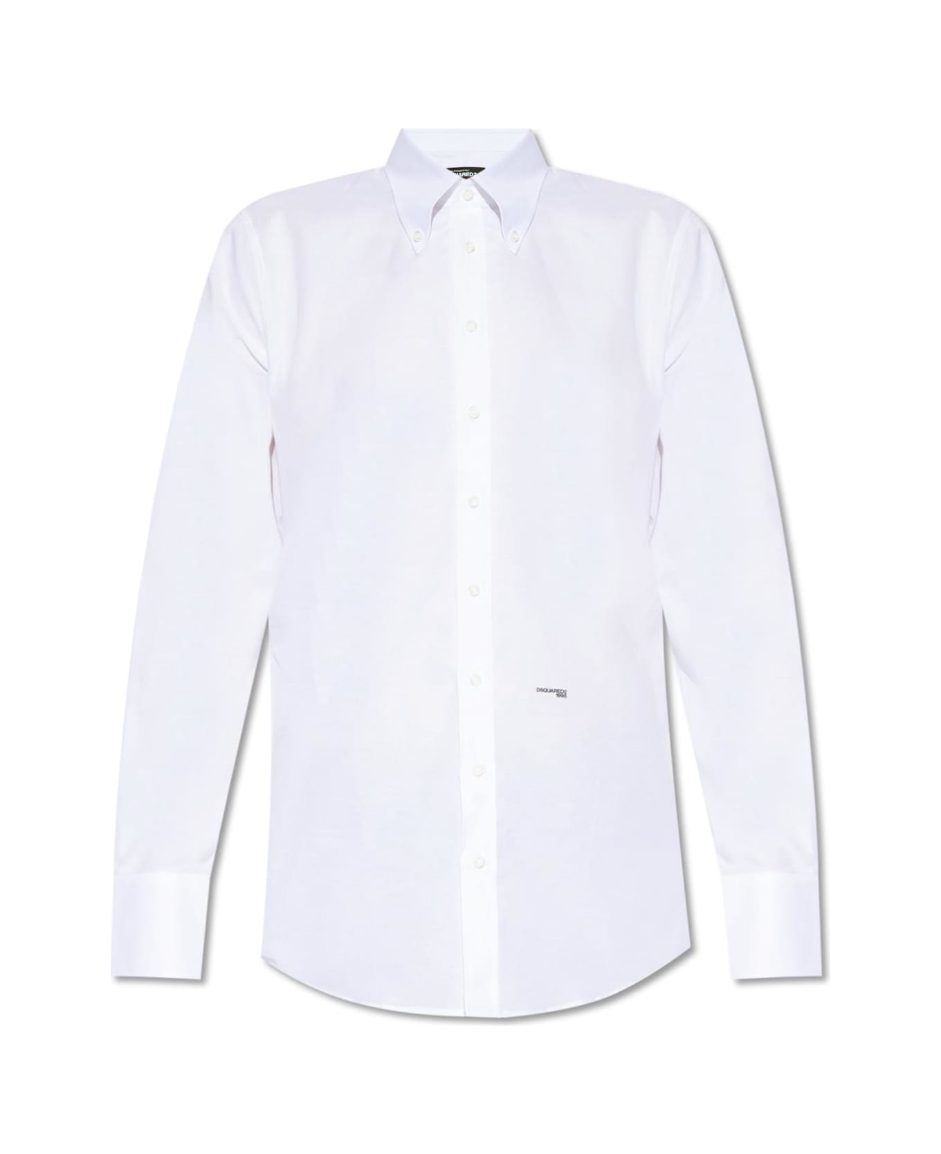 White fitted shirt from Dsquared2. Made of cotton, this design features button fastenings, a black logo print and long sleeves with buttoned cuffs. Composition: 100% Cotton