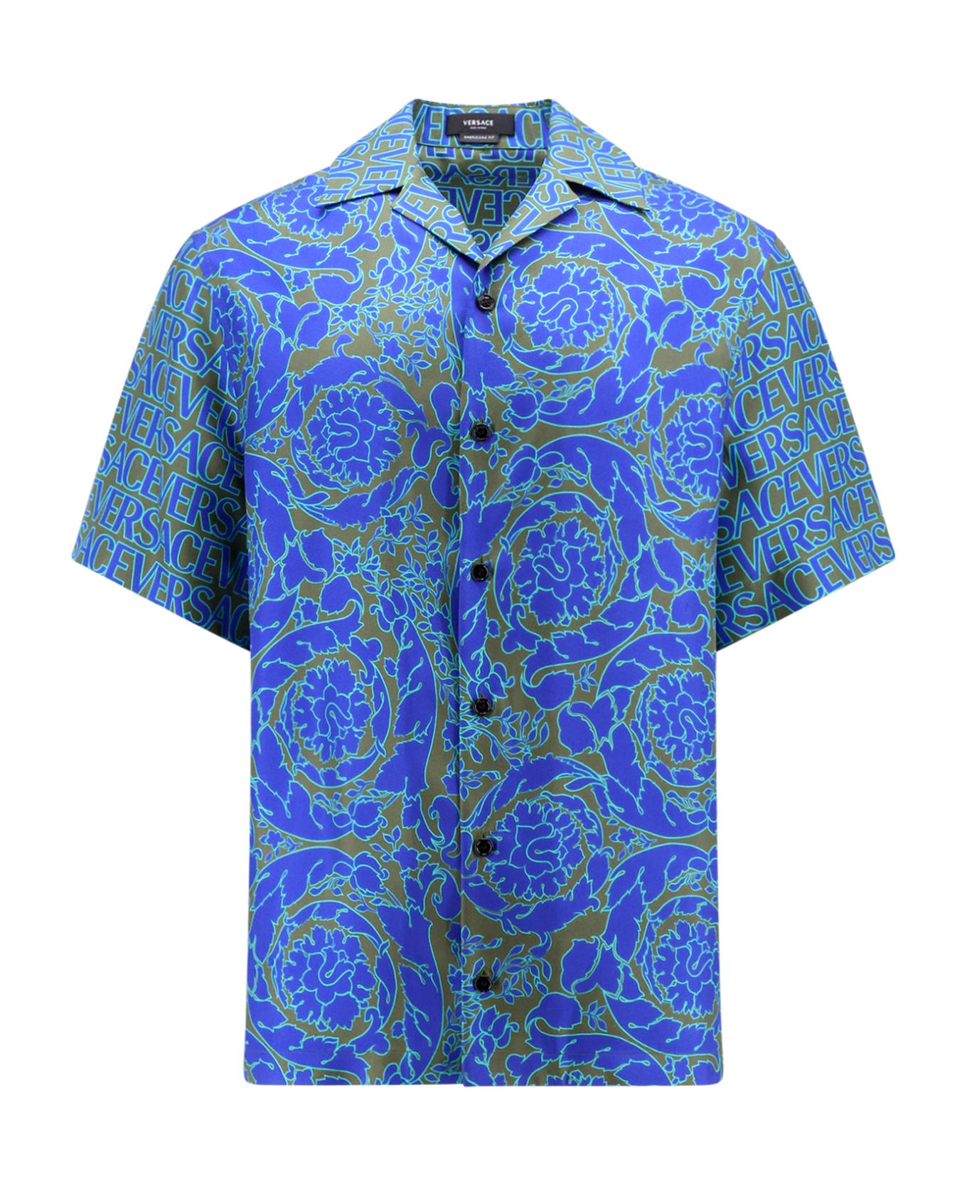- Bowling Collar - Short Sleeve - Versace Allover Internal Print - Made In Italy - 100% Silk