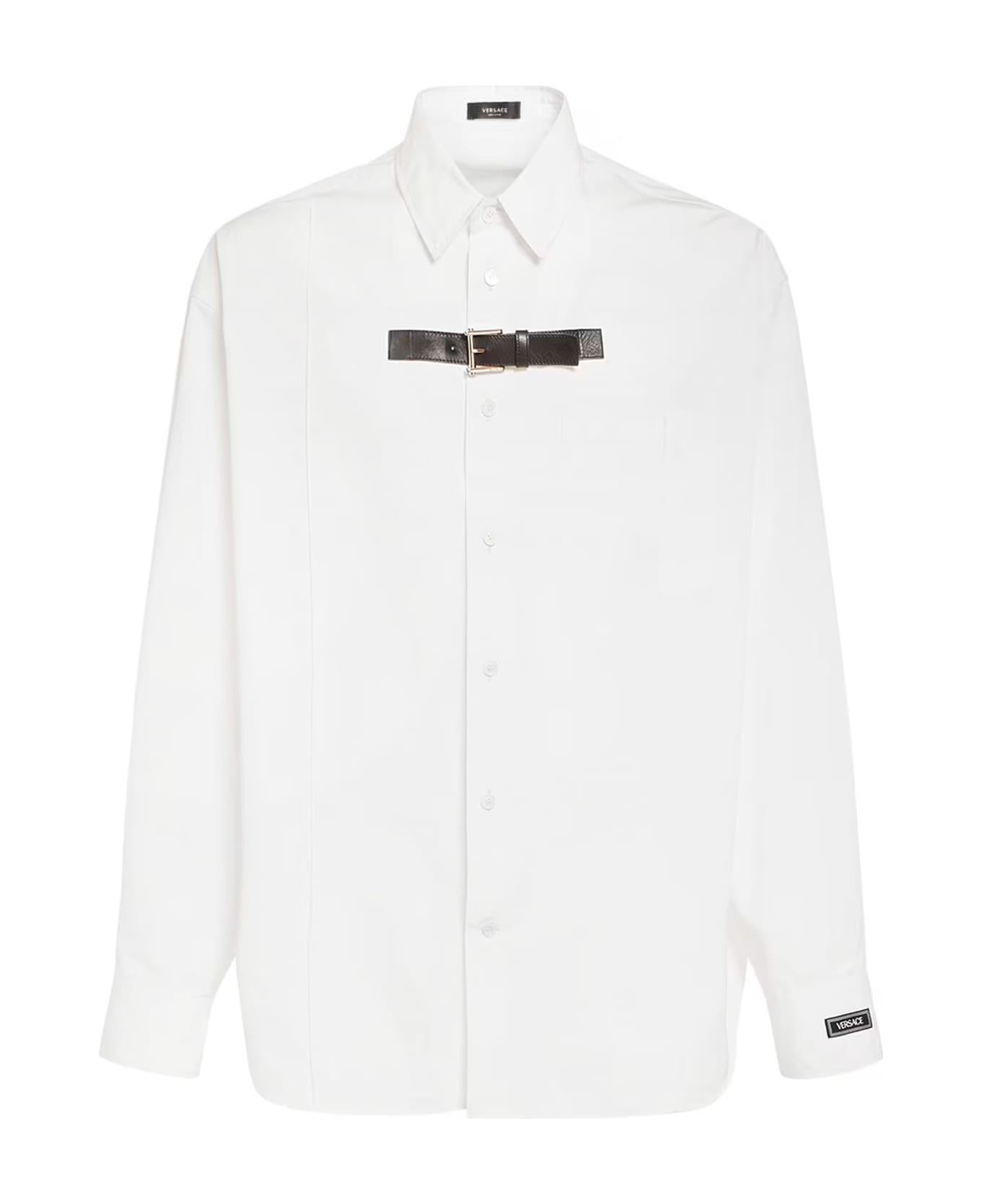 - Closure With Mother-of-pearl Buttons - Black Leather Strap With Metal Buckle - Applied Breast Pocket - Made In Italy - 100% Cotton