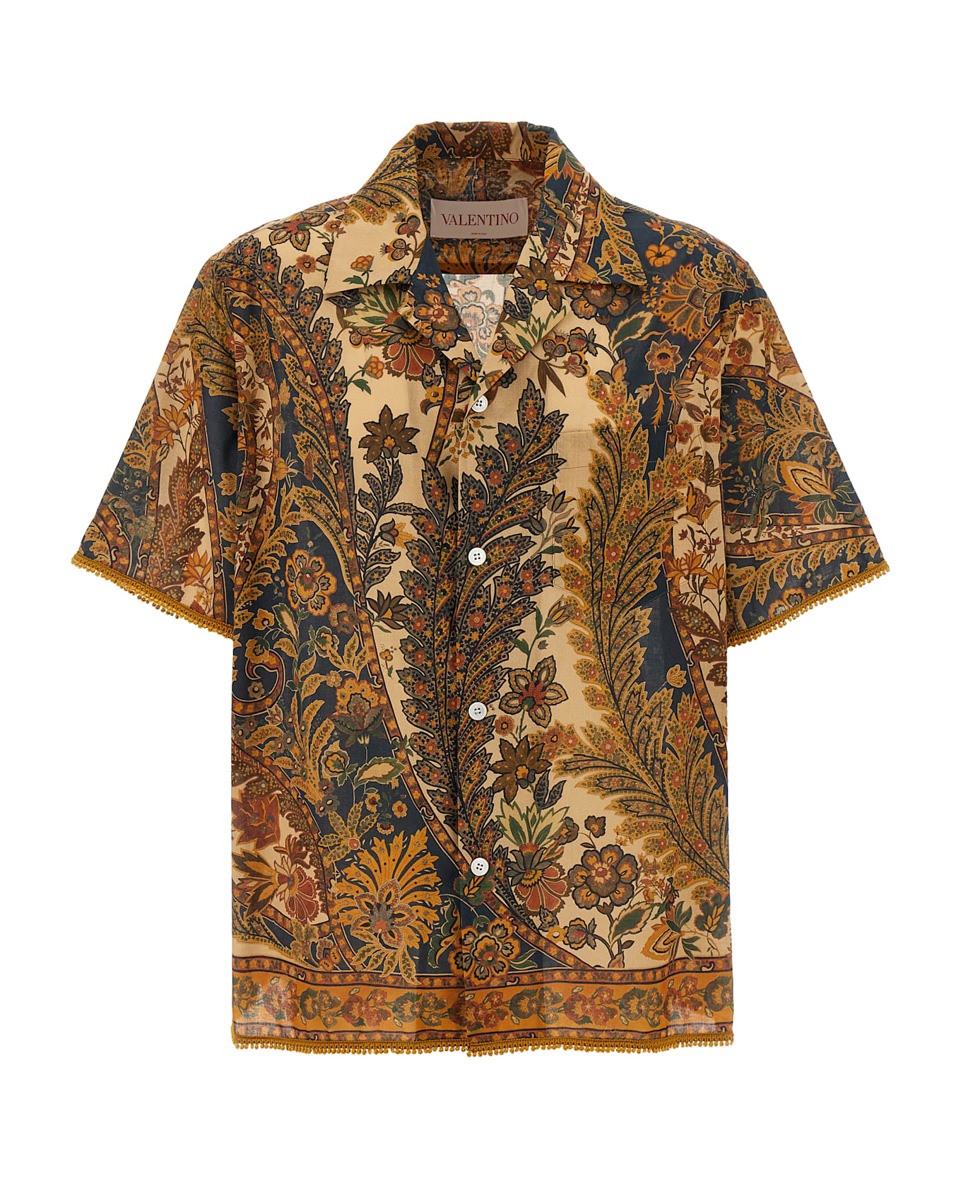 Voyage Imaginaire cotton muslin shirt, bowling style with V-neck and lapels, button closure, front pocket, short sleeves. Composition: 100% cotton