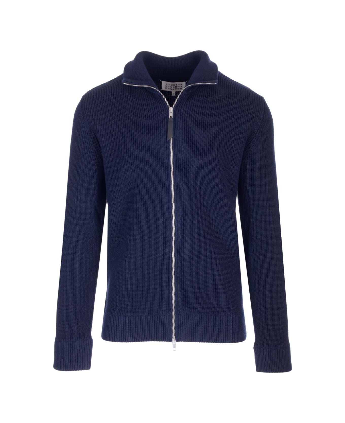 Zipped cardigan by Maison Margiela in blue ribbed wool and cotton Composition: 46% WO 31% LI 23% CO