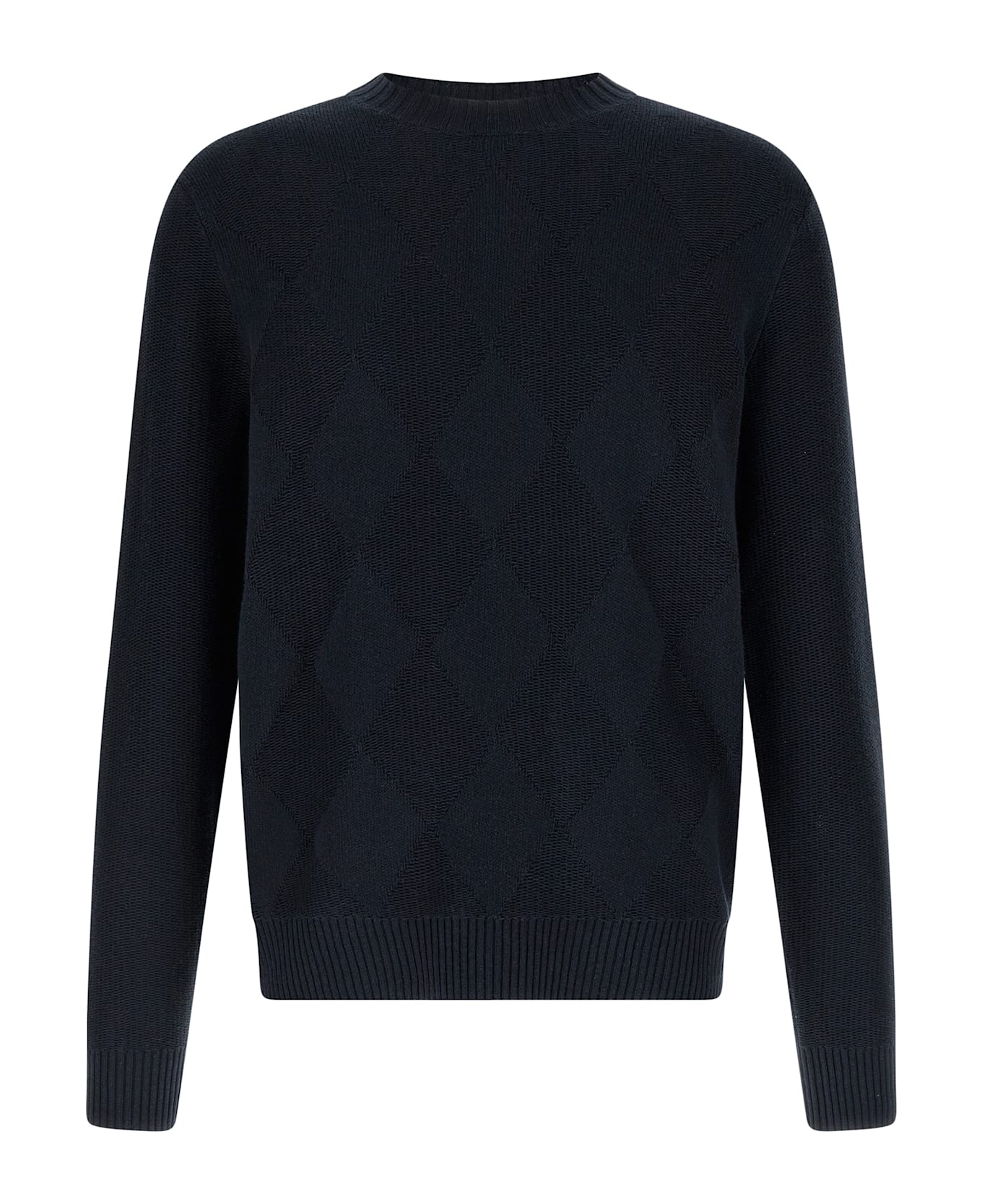 Cotton and linen blend sweater with tone-on-tone Diamond intarsia on the front, crew neck, long cuffed sleeves, and band on the hem. Composition: 60% cotton, 40% linen