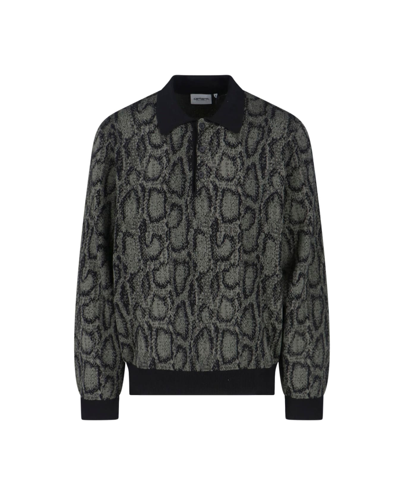 Polo sweater "Snake" Carhartt WIP in a green cotton and viscose blend, animal print "Snake Print", collar, button closure, long sleeves. Composition: 50% Viscose, 50% Cotton
