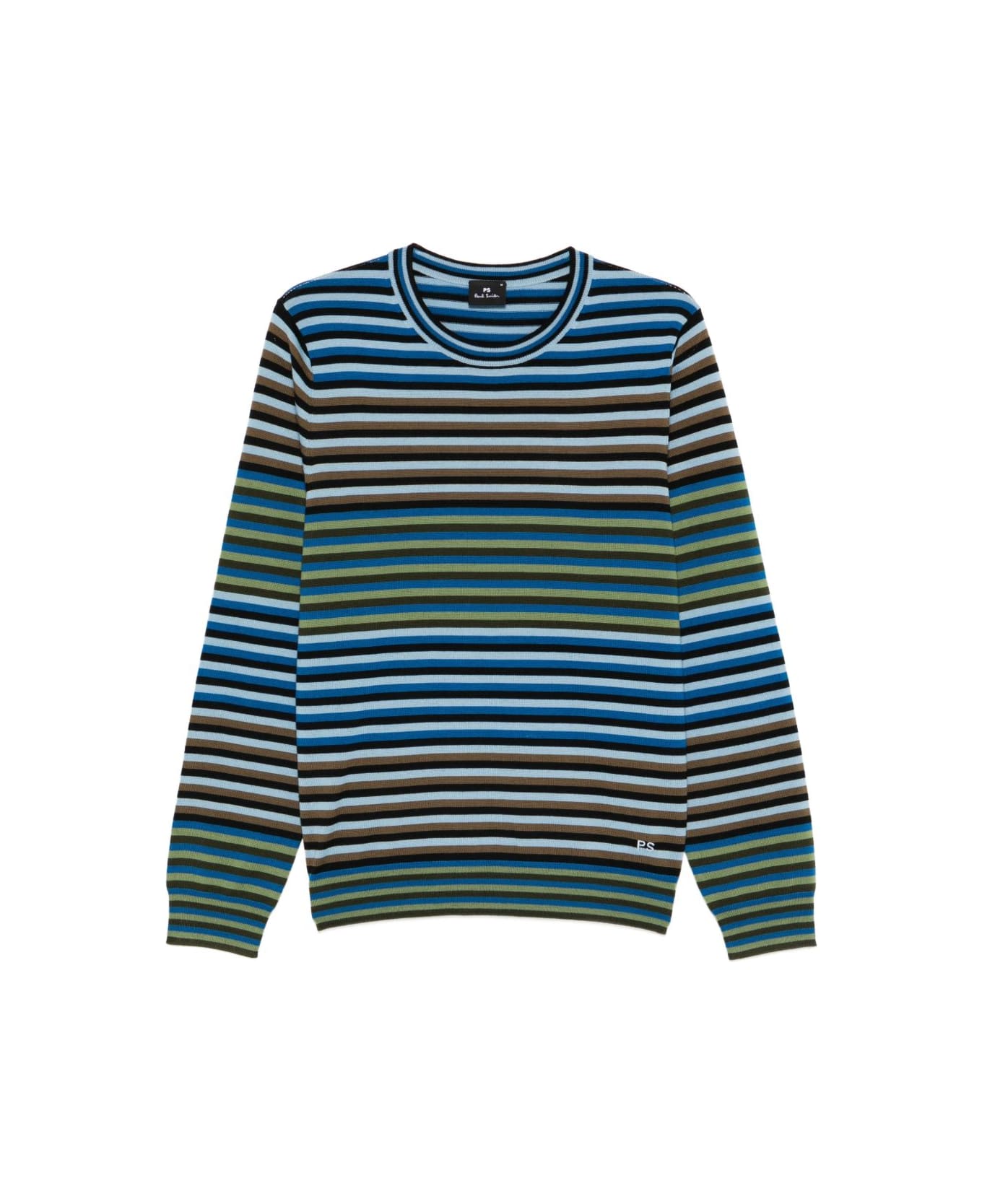 blue and green horizontal stripe crew neck long sleeves ribbed hem ribbed cuffs