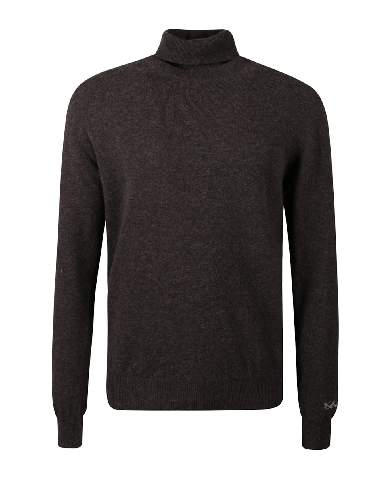 dark brown turtleneck neck long sleeves ribbed cuffs ribbed hem embroidered logo