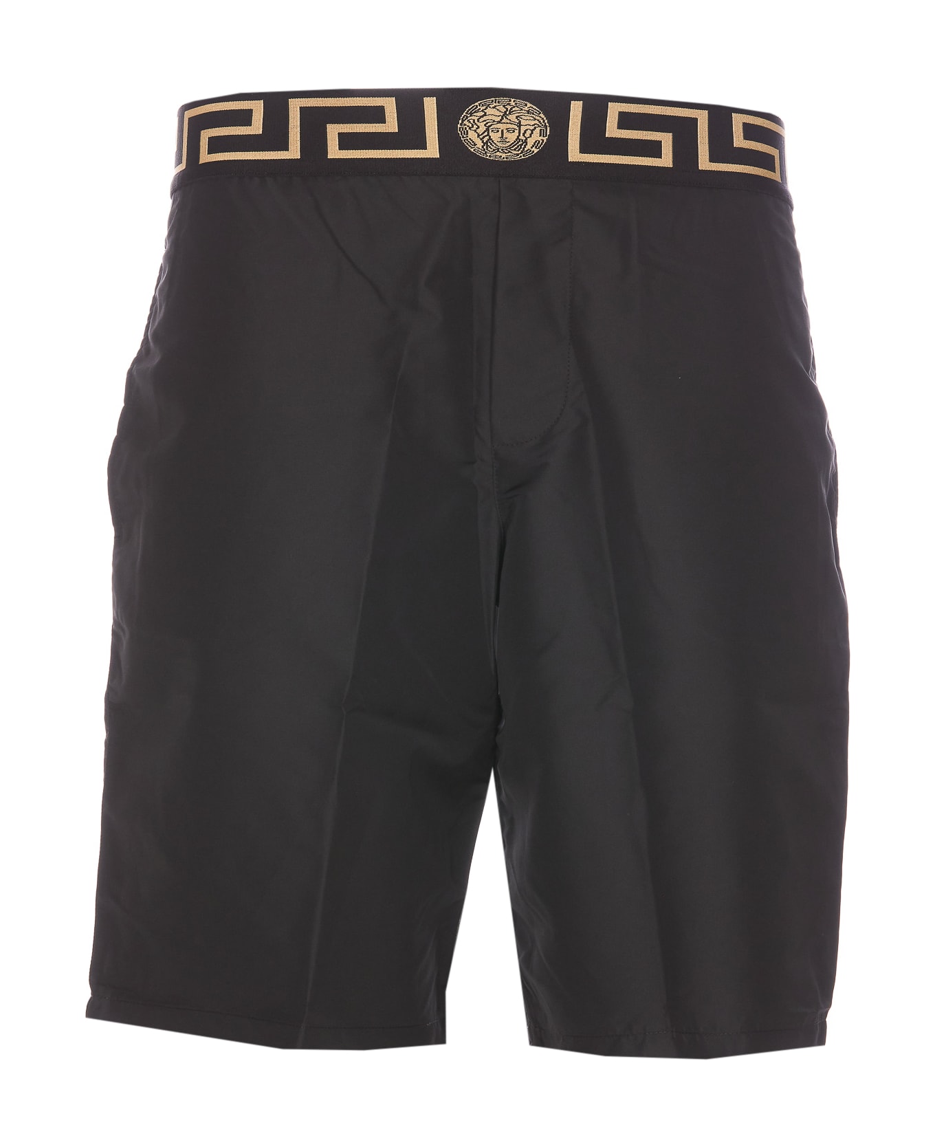 Versace black swimwear, Greca logo, elasticized on waist, lateral pockets Composition: 100% Polyester