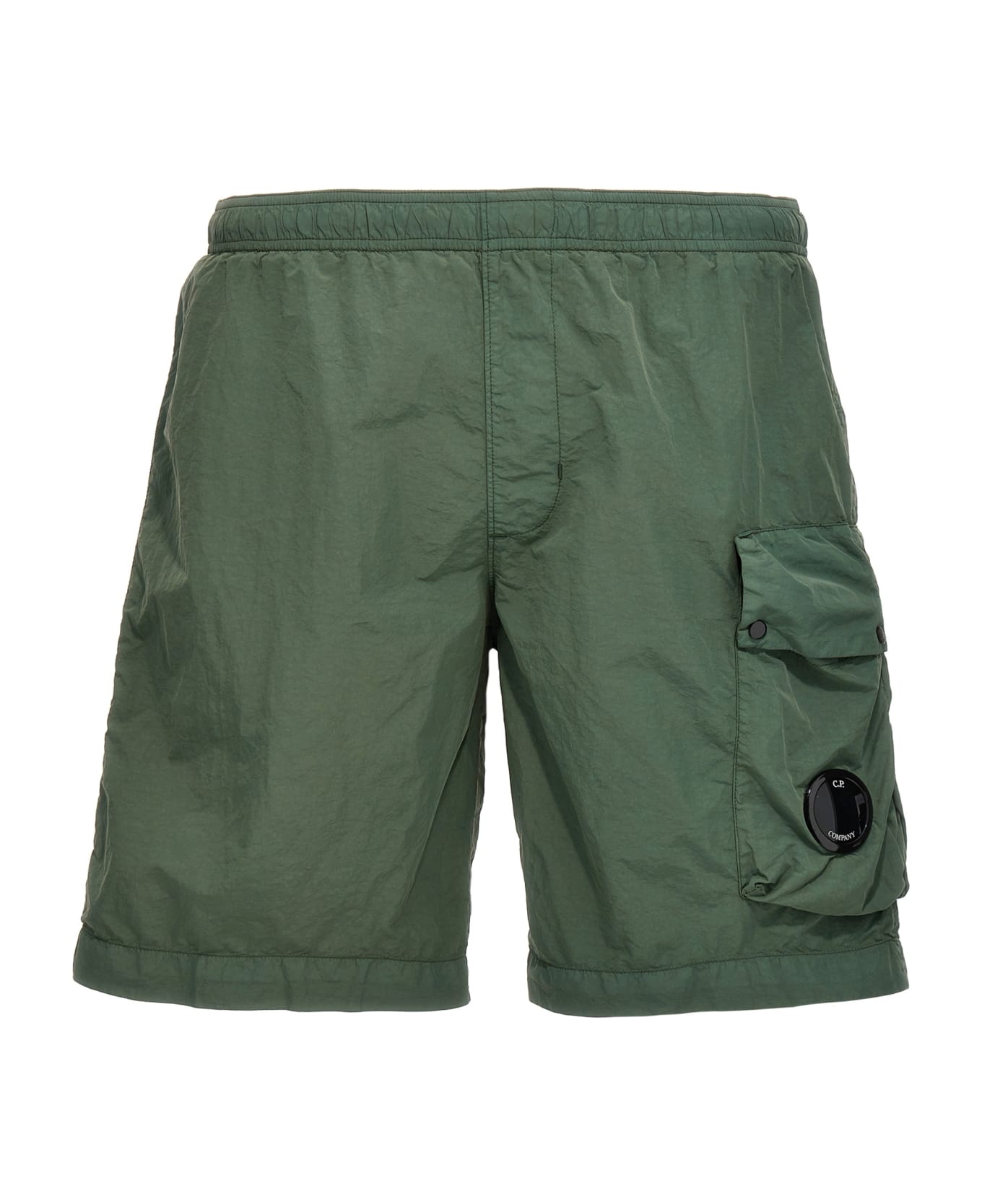 Nylon cargo swim shorts with logo badge, drawstring elastic waistband, side pockets, inner mesh briefs. Composition: 100% polyamide