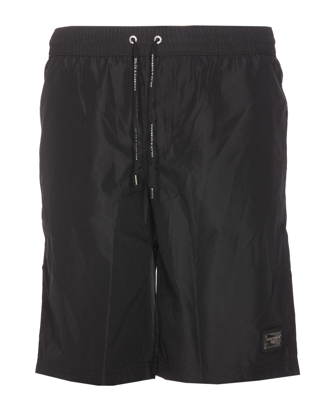Dolce&Gabbana black Plaque logo swim trunks, coulisse closure, lateral pockets, plaque logo on the back Composition: 100% Polyestere