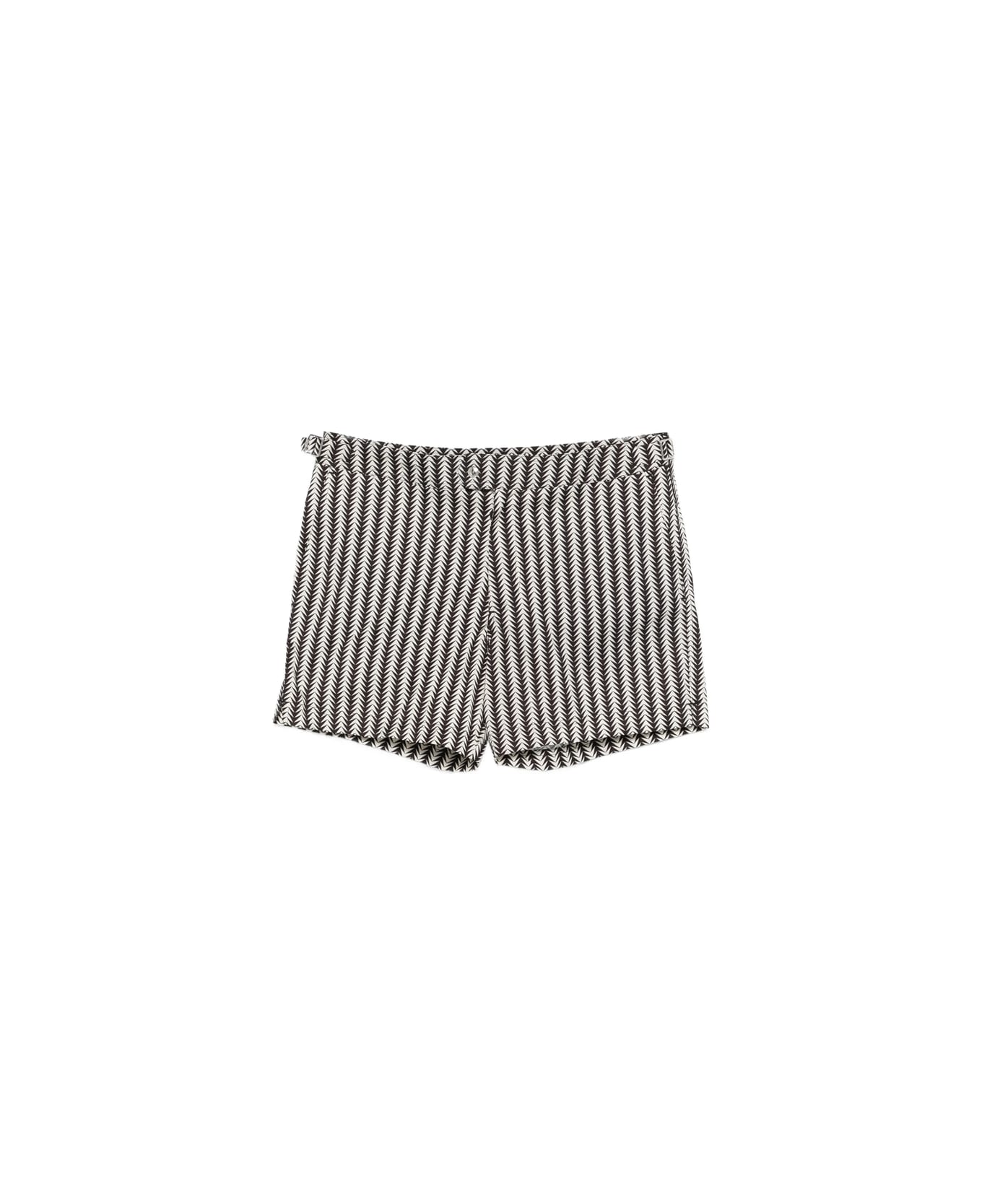 white and black herringbone pattern side tabs side diagonal pockets Be mindful to try on swimwear over your own garments.