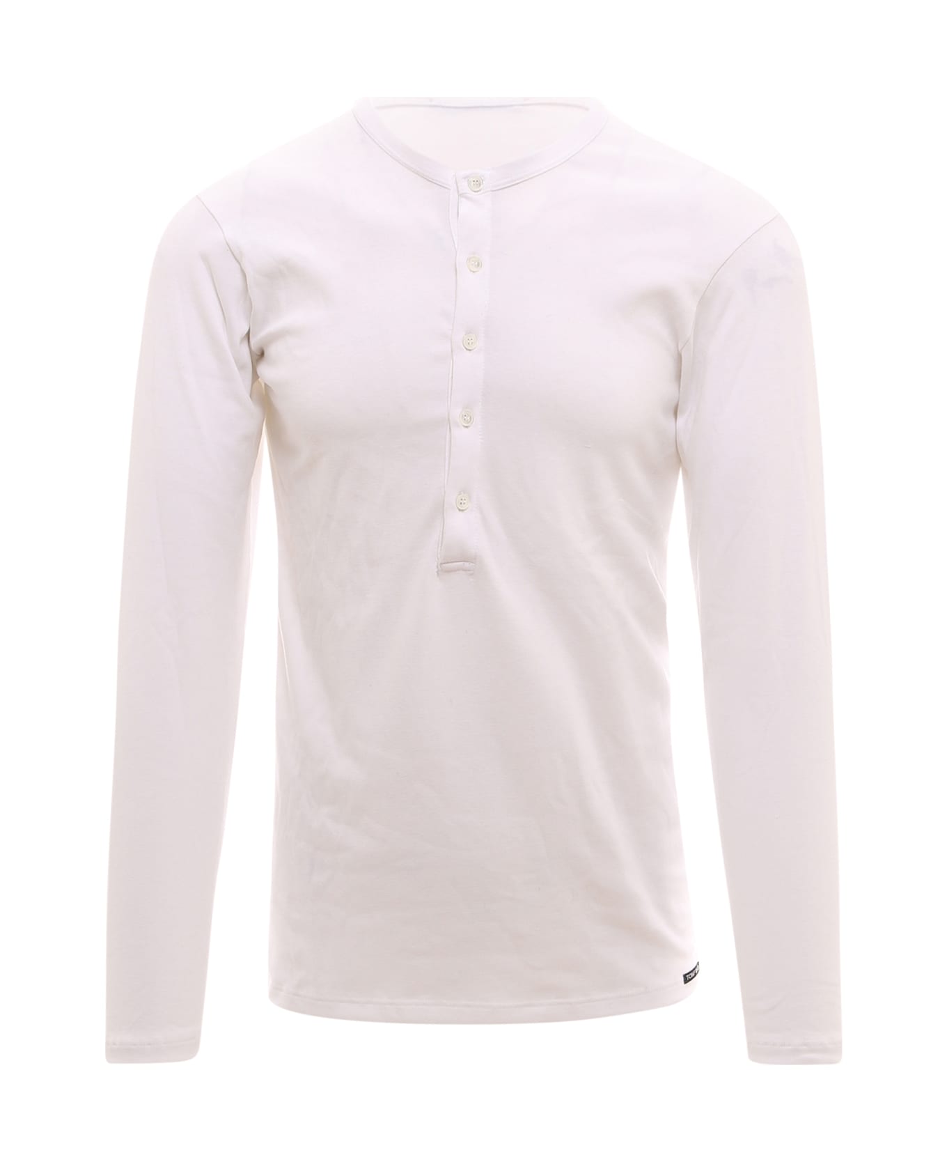 Cotton t-shirt - Crew-neck With Buttons - Long Sleeves - Logo Patch - 95% Cotton 5% Elastane