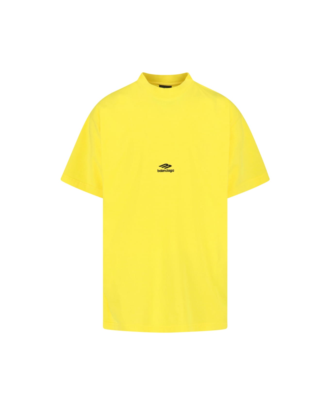 Balenciaga '3B Sports Icon' yellow cotton crew neck t-shirt with short sleeves, logo printed at the back and straight hem. Composition: 100% Cotton