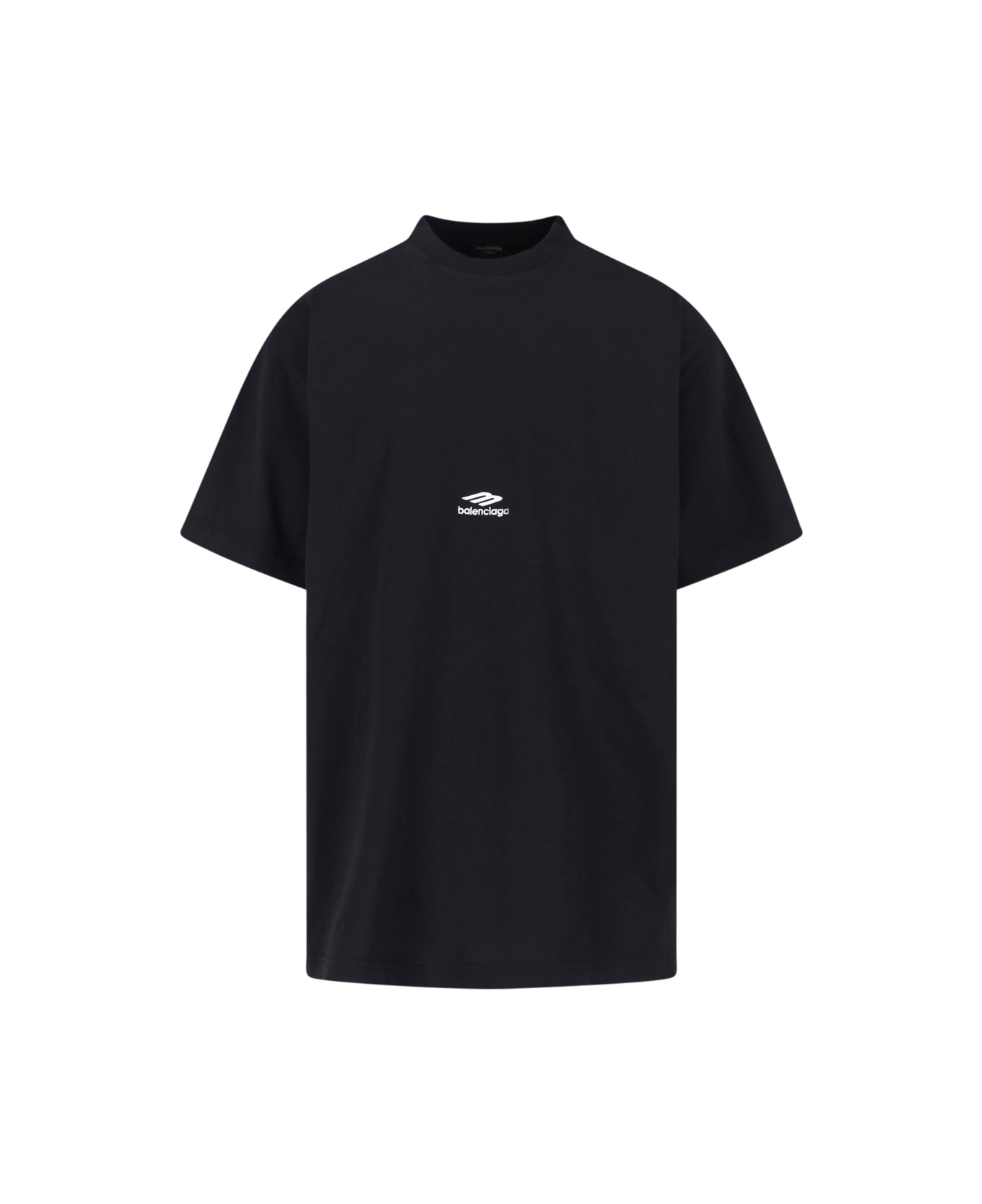 Balenciaga '3B Sports Icon' black cotton crew neck t-shirt with short sleeves, logo printed at the back and straight hem. Composition: 100% Cotton