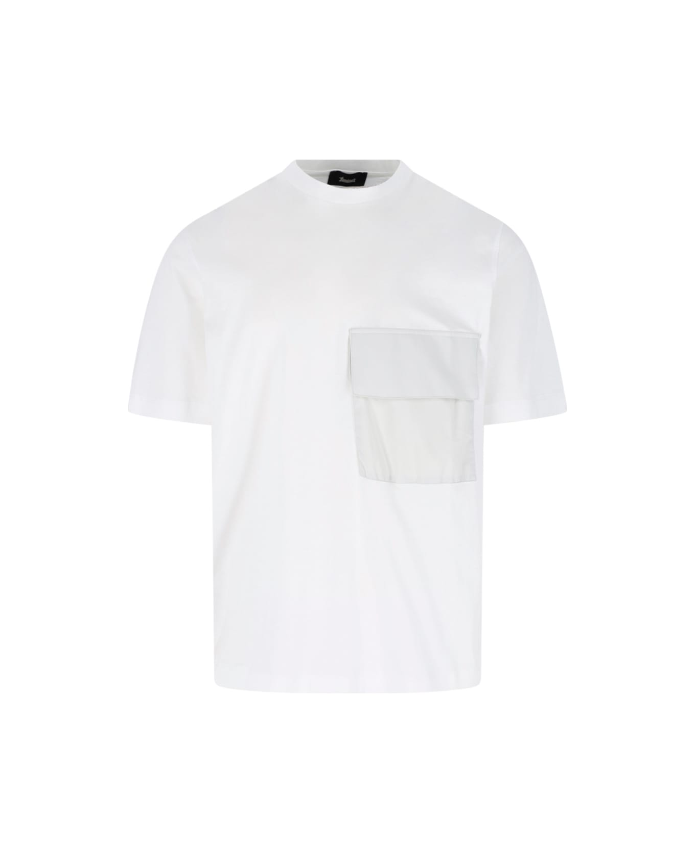 - White Laminar cotton T-shirt - Crew neck - Short sleeves - One maxi front pocket