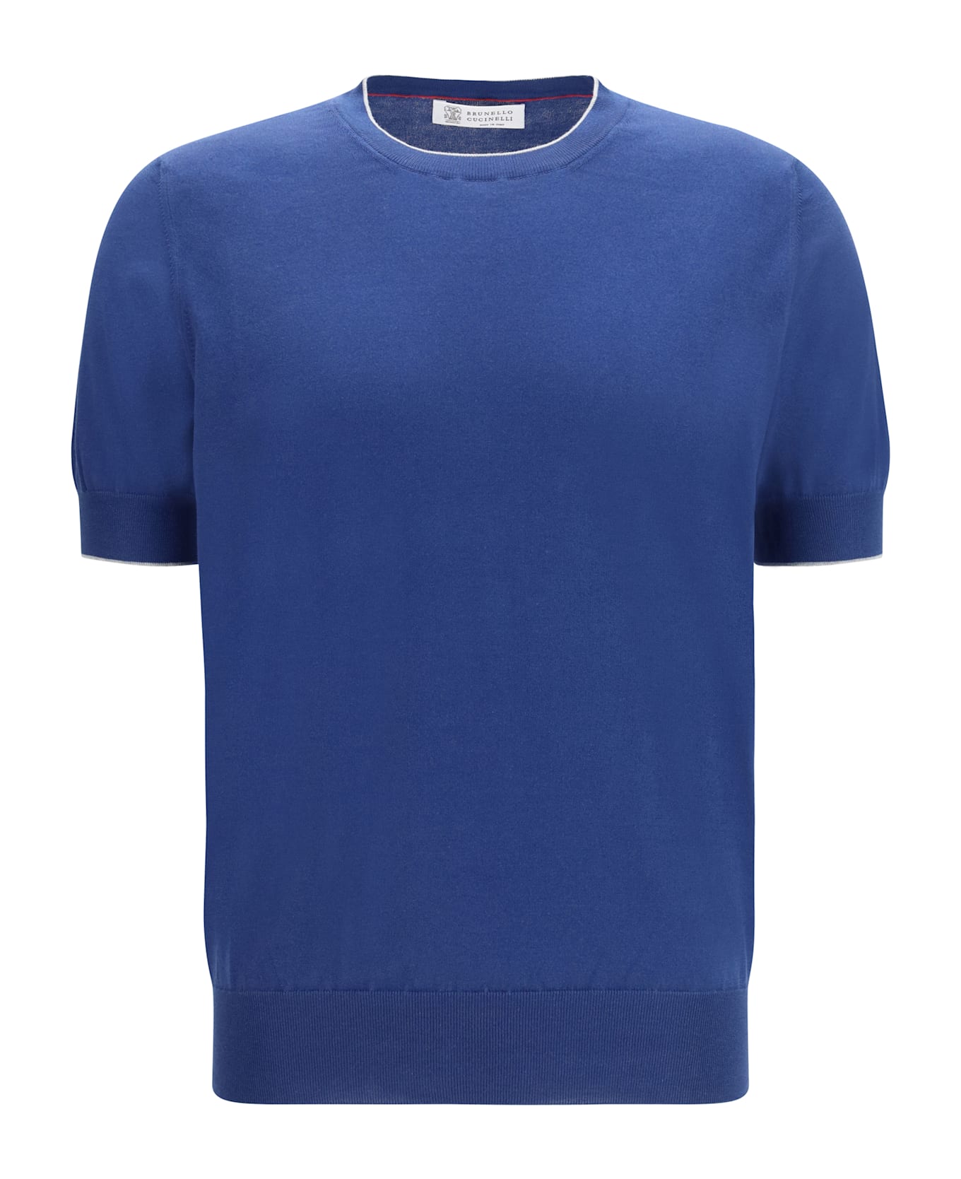 The cotton t-shirt by brunello cucinelli is a garment with a sophisticated, contemporary style. the contrasting ribbed crew neck and ribbed hems on the sleeves and bottom add distinctive details and a touch of originality. the monochrome design gives a clean and elegant look, ideal for those seeking a simple yet refined look. made of cotton, the t-shirt is comfortable and breathable, perfect for warmer days. the combination of classic elements and modern details makes this garment a versatile option for a variety of casual and fashionable outfits.