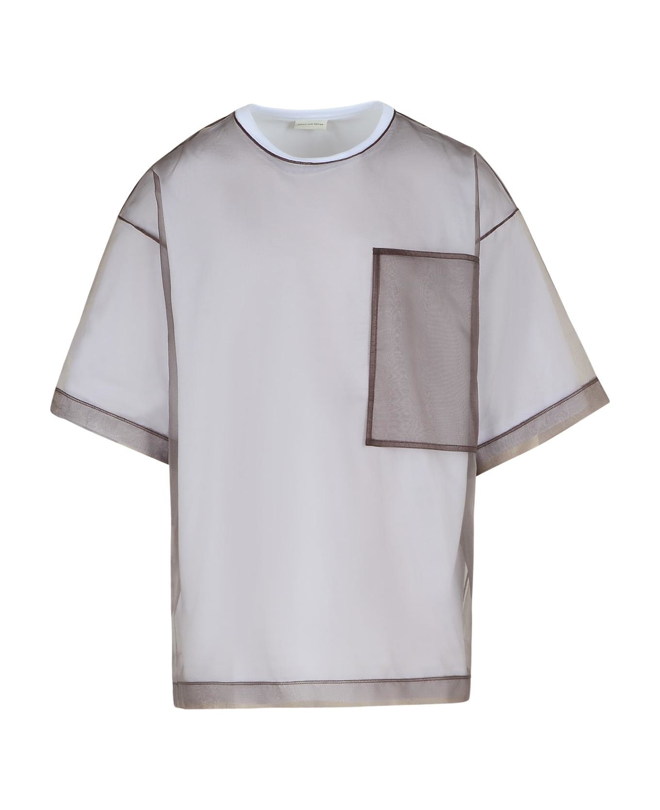 Crewneck, double layer in transparent polyester, contrasting finished, one front pocket