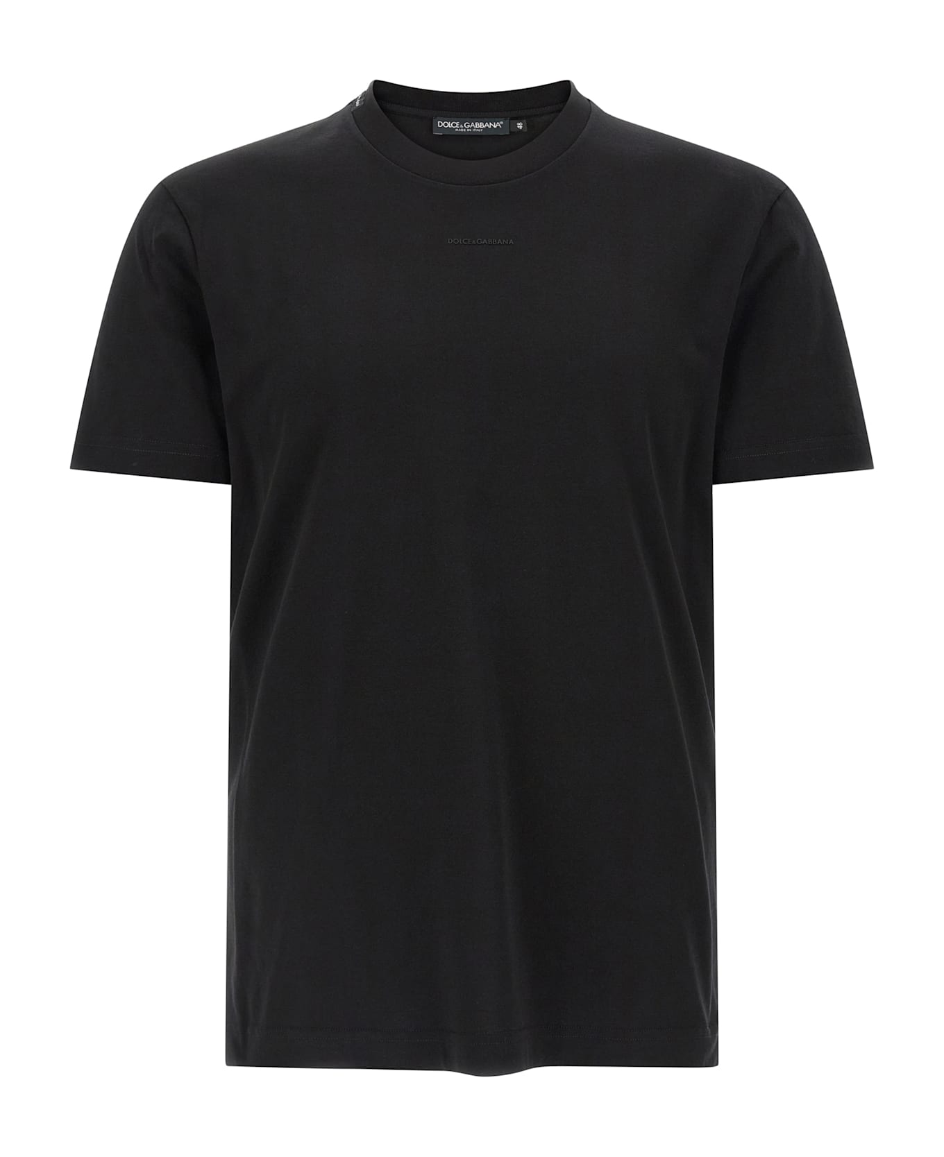 Cotton jersey T-shirt, mini tone-on-tone logo embossed on the front, crew neck, short sleeves with dropped shoulders. Composition: 100% cotton