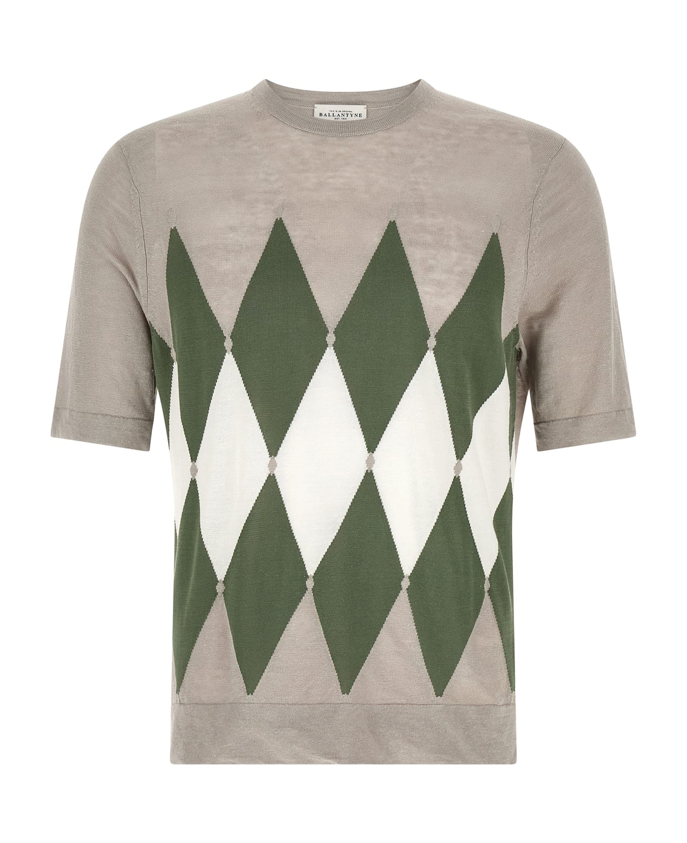 Linen and cotton blend T-shirt with front Argyle jacquard pattern, crew neck, short sleeves. Composition: 50% linen, 50% cotton