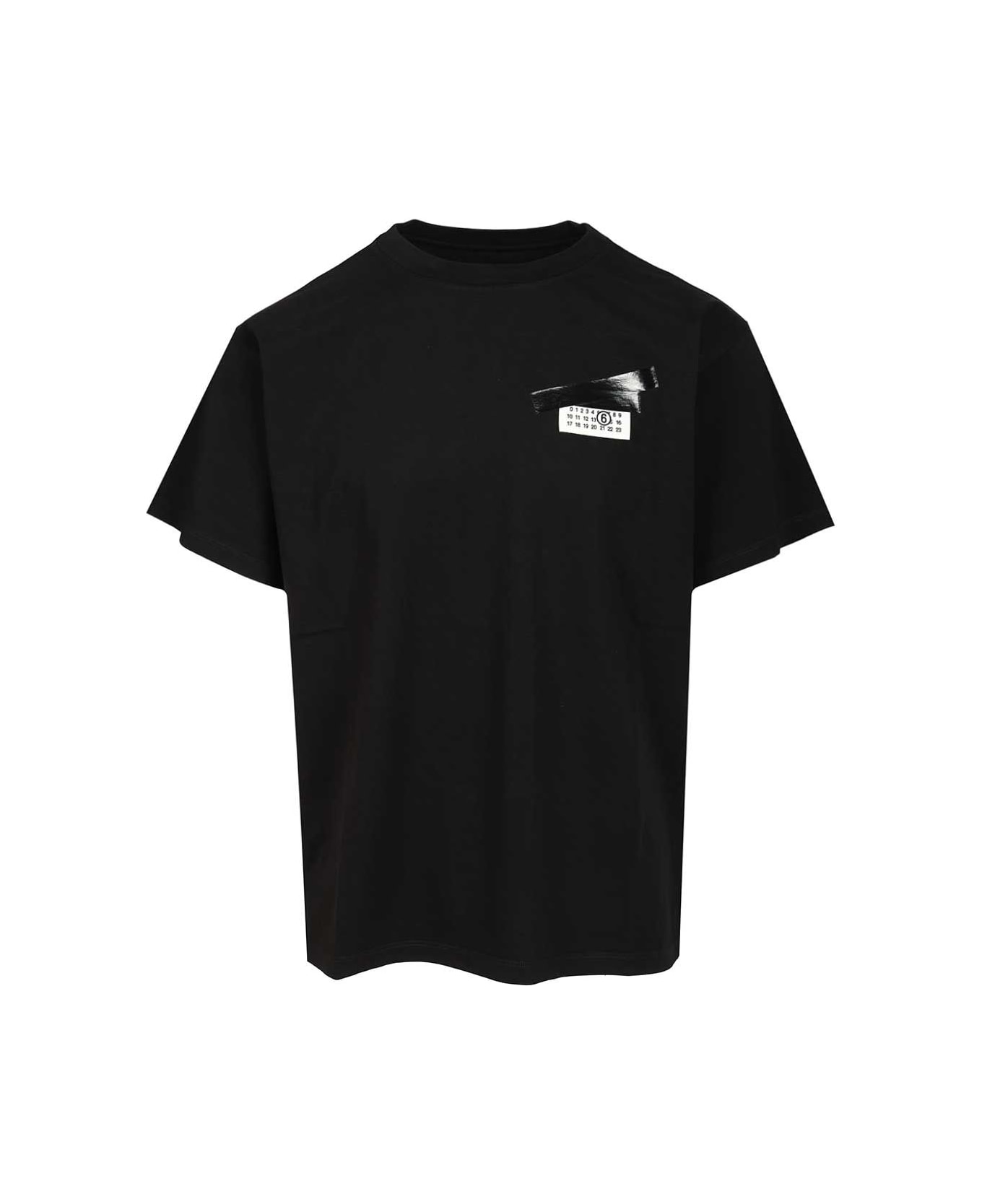 MM6 Maison Margiela 'Trompe l'oeil' cotton T-shirt, featuring a trompe l'oeil print of the number label, secured with photorealistic packing tape, and finished on the back with the white topstitching line that identifies MM6.