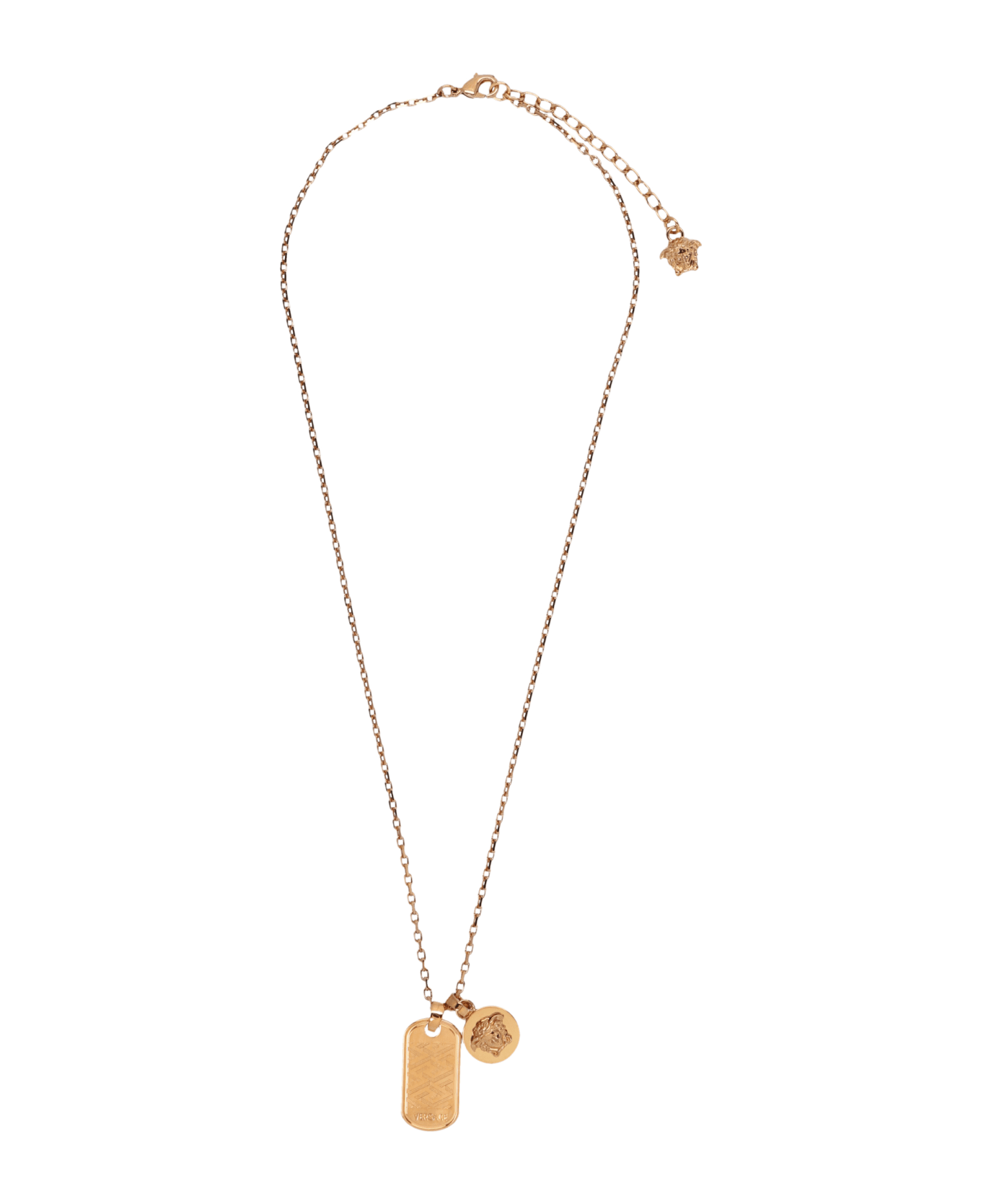 'La greca tag' adjustable metal necklace with double pendant. Composition: 100% metal