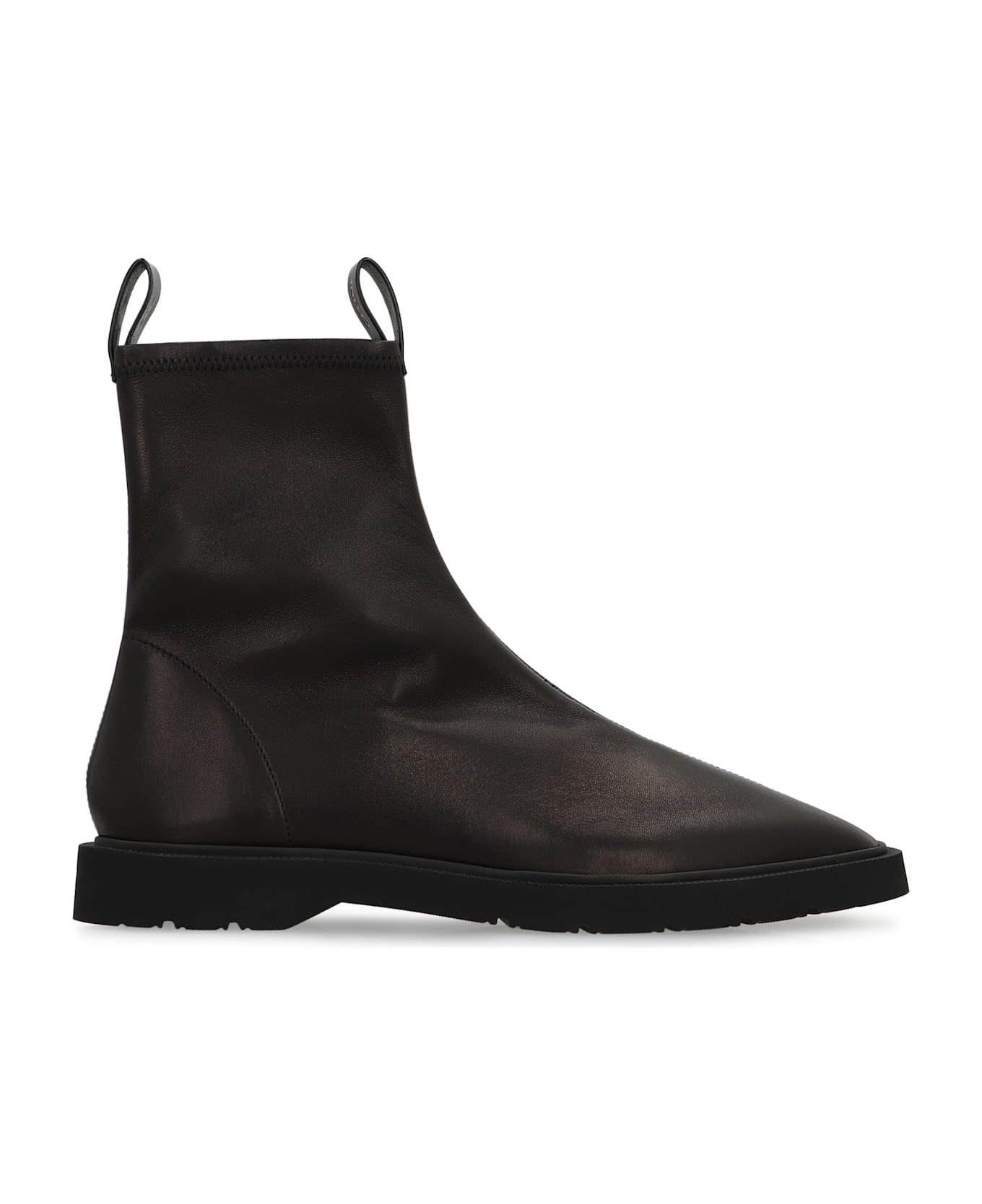 Ankle boot in black leather, characterized by a tapered shape and minimalist design. features elegant stitching details and a zipper on the inner side for easy wear. the sole is sturdy and offers good grip, making these shoes ideal for everyday use. perfect for completing casual or more refined outfits. 100% lamb Composition: 100% % Lamb