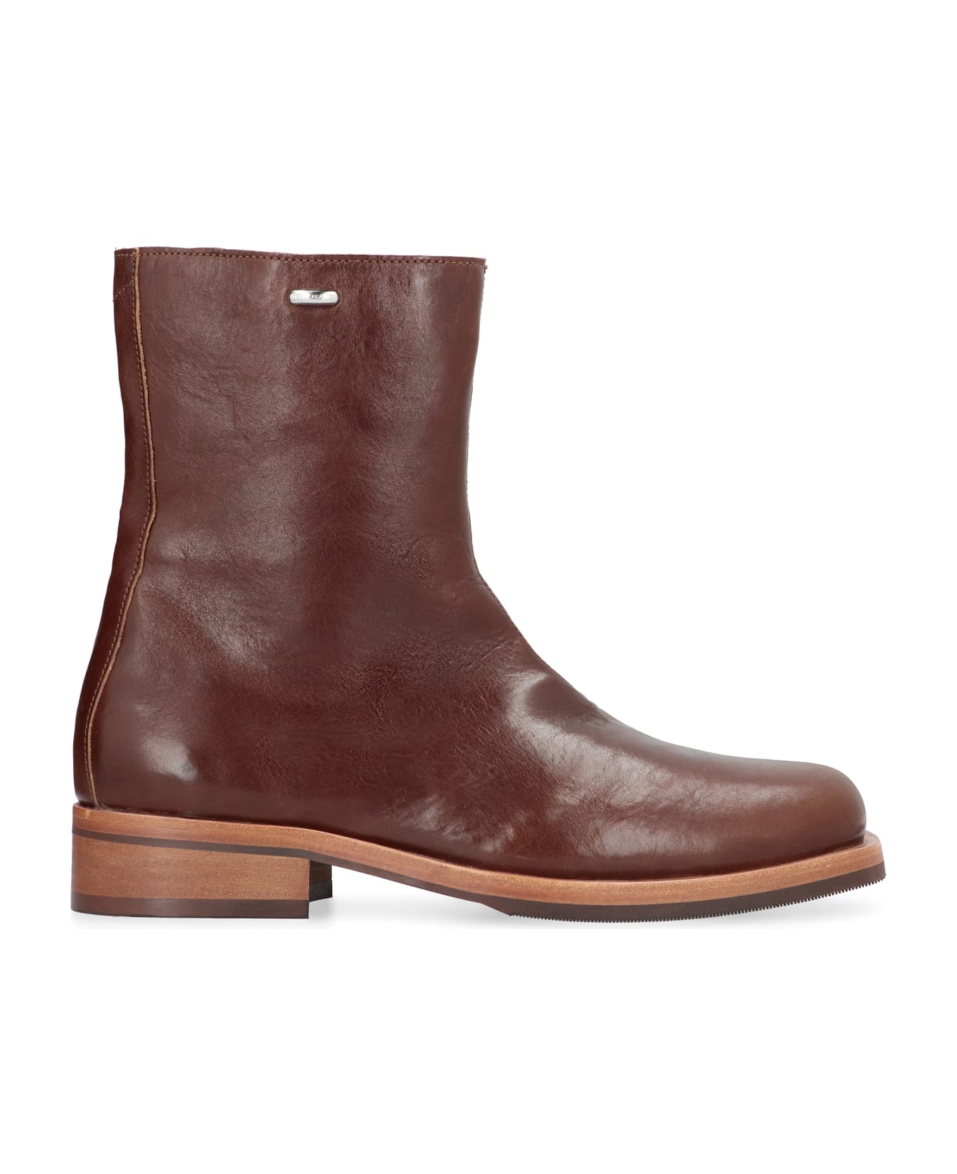 Metal side logo side zip closure round toeline vibram sole 100% rubber, 100% cow hide Composition: 100% % Rubber, 100% % Cow Hide