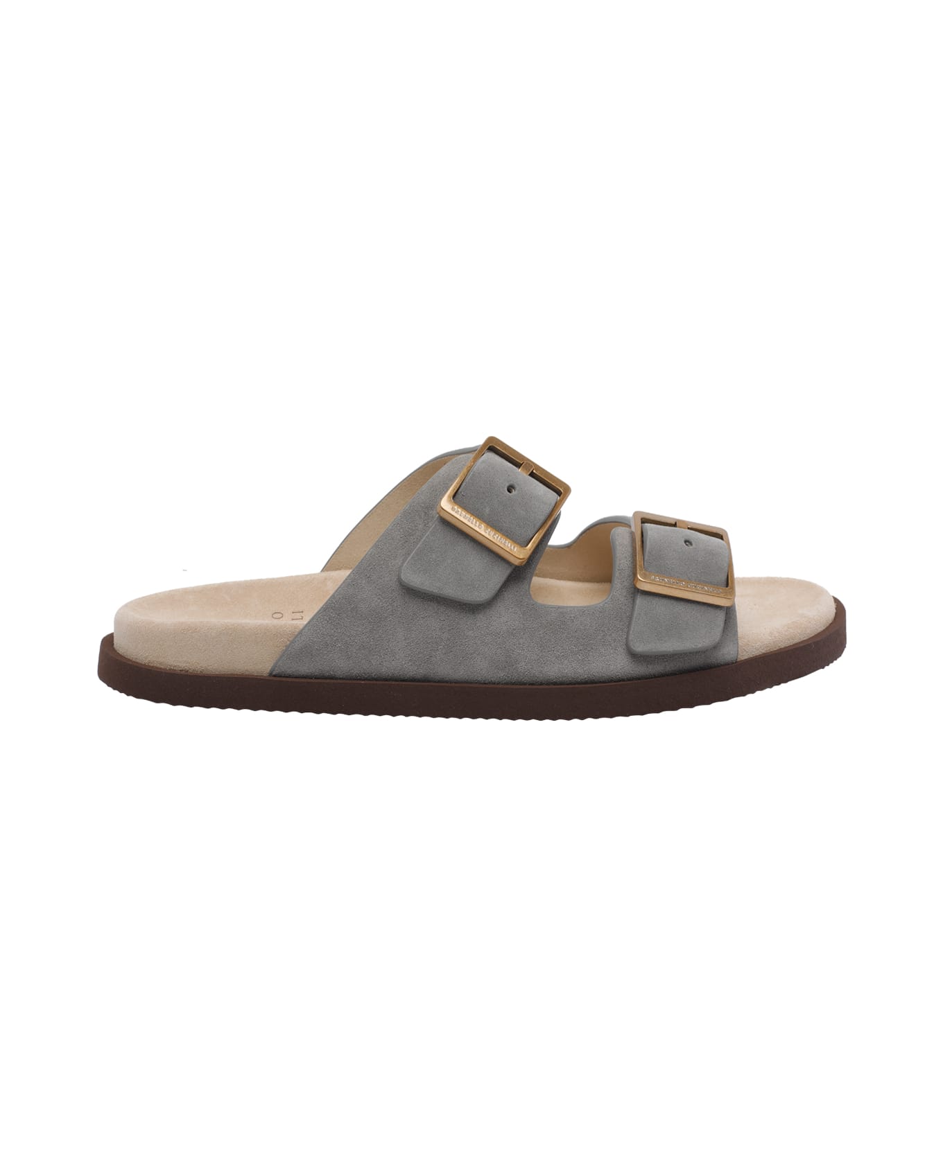 Brunello Cucinelli dark grey suede slides, round toe, buckles closure Composition: 100% Suede Leather/rubber Sole