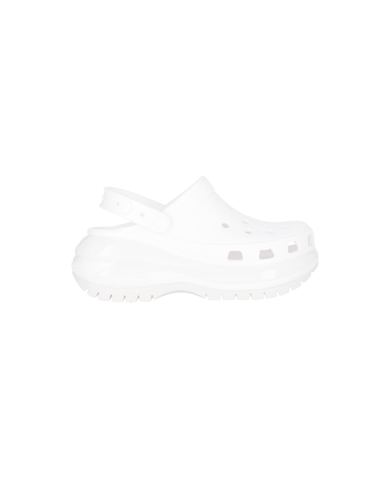 Crocs "Mega Crush" white rubber mules with round toe, perforated upper, movable strap at the back, maxi rubber sole embossed logo detail on the back. Composition: 100% Croslite