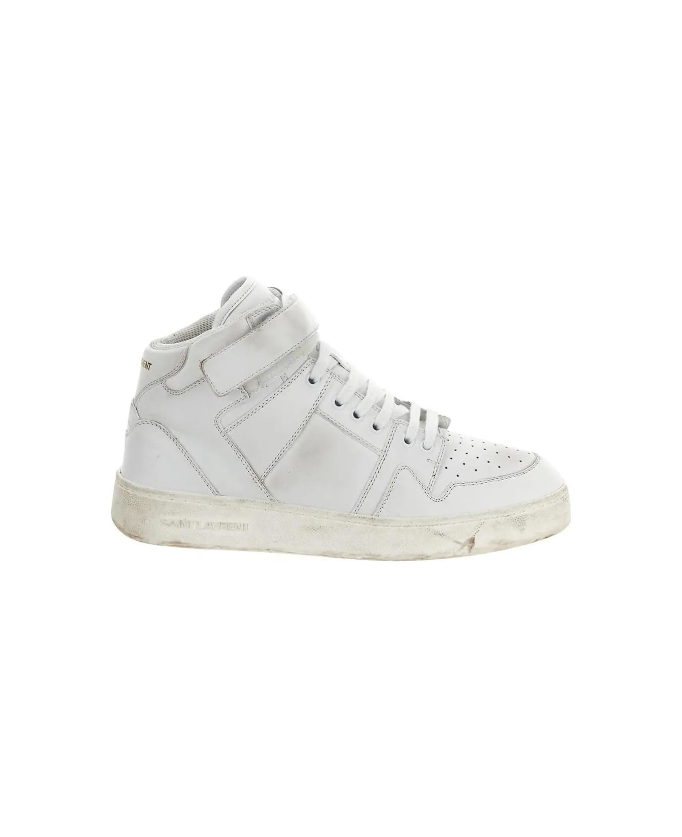 Saint Laurent sneakers in white leather with dirty-washed effect, round toe, lace-up fastening, top velcro strap, grained sole with embossed logo, rear gold-finish logo print and openwork vamp. Composition: 100% Leather