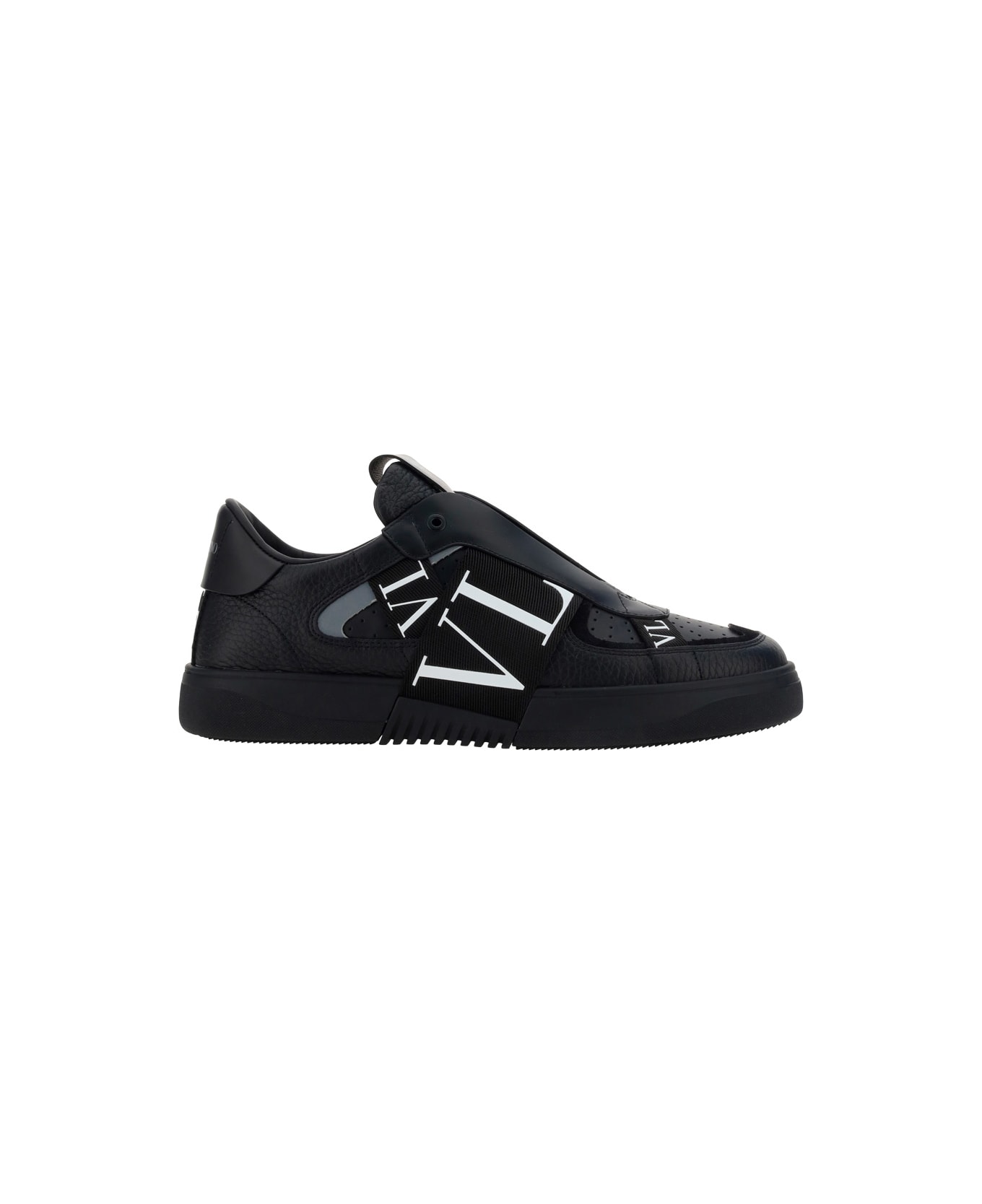 Calfskin vl7n sneakers by valentino garavani, perforated round toe, a flat sole, a slip-on style, a contrasting embroidered logo label on front tab, a paneled design, and webing bands with contrasting iconic brand monogram applied to side panels. Composition: 100% % Calf Leather Bos Taurus, 100% % Rubber