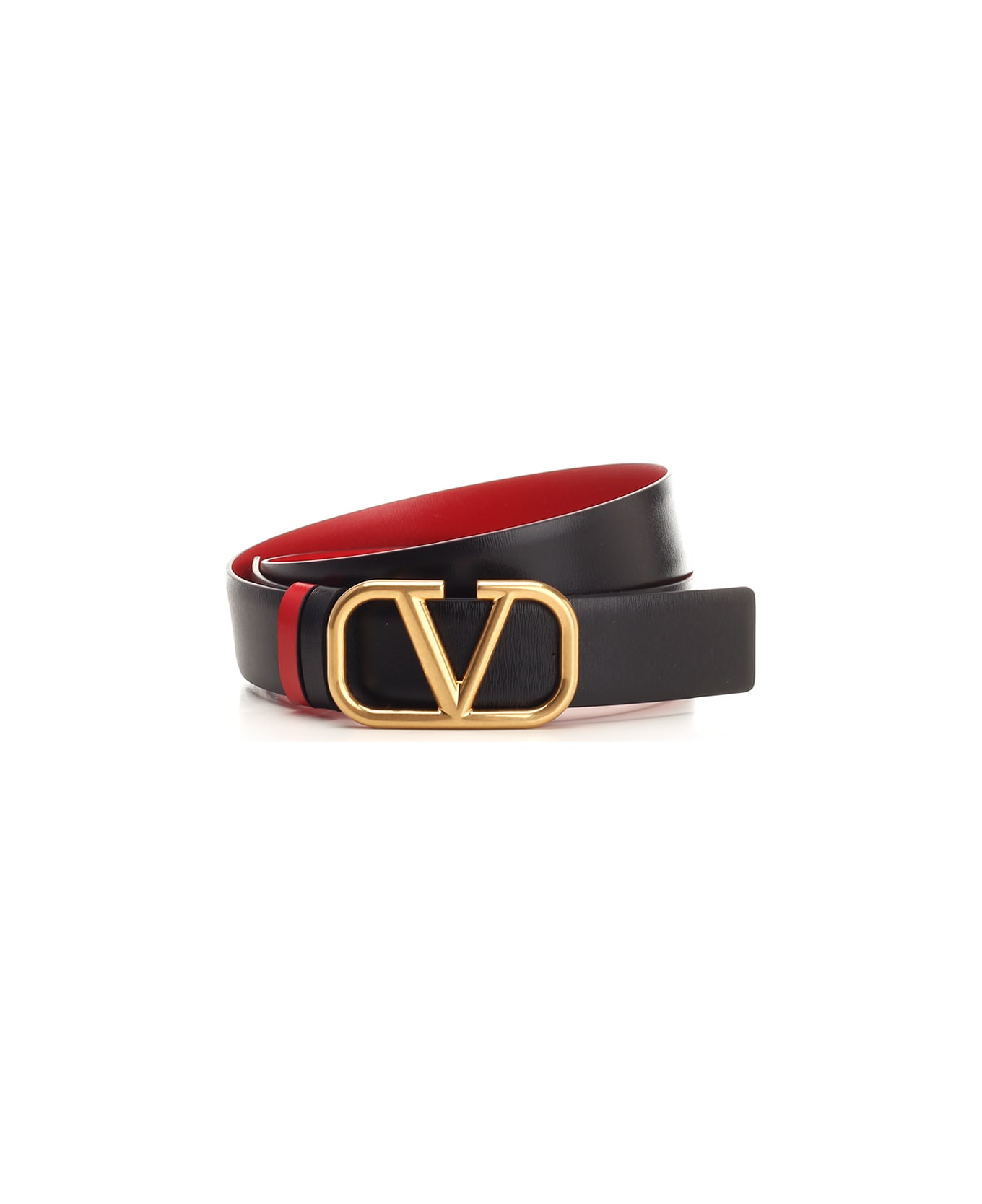 Black and red leather "V-Logo" reversible belt from Valentino Garavani with antiqued brass finish buckle. Composition: I CALF LEATHER - BOS TAURUS