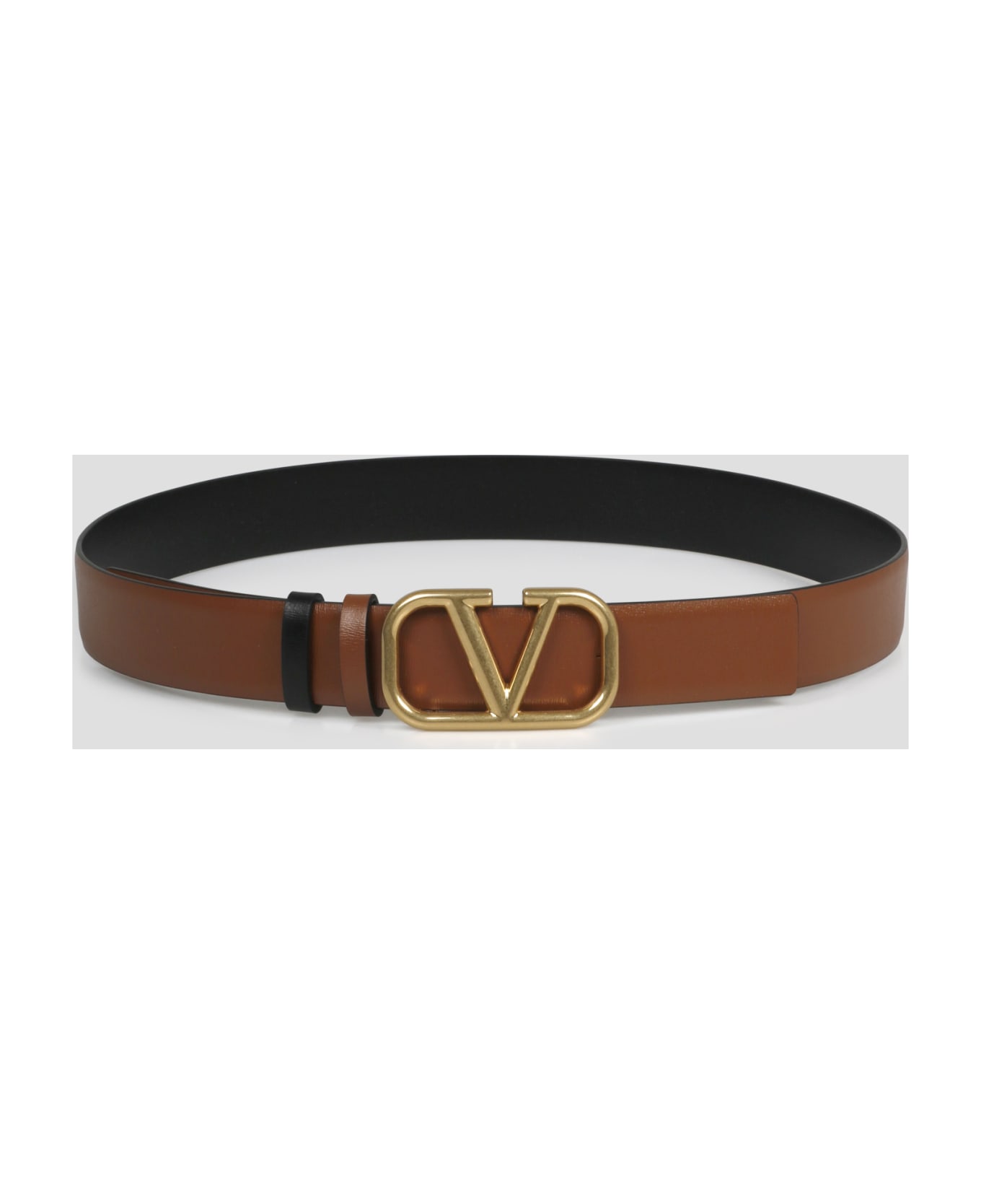Valentino Garavani Vlogo Signature reversible belt, in shiny leather. - VLogo Signature buckle in old-brass finish