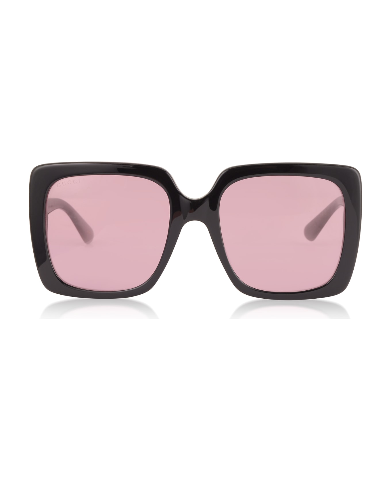 GG0418S Rectangular-frame Acetate Sunglasses feature shiny black oversized acetate frame and temples with logo in crystal detail that will amp up your sunny disposition. 100% UVA/UVB protection pink lens. Box included. Made in Italy. Shape: Rectangular