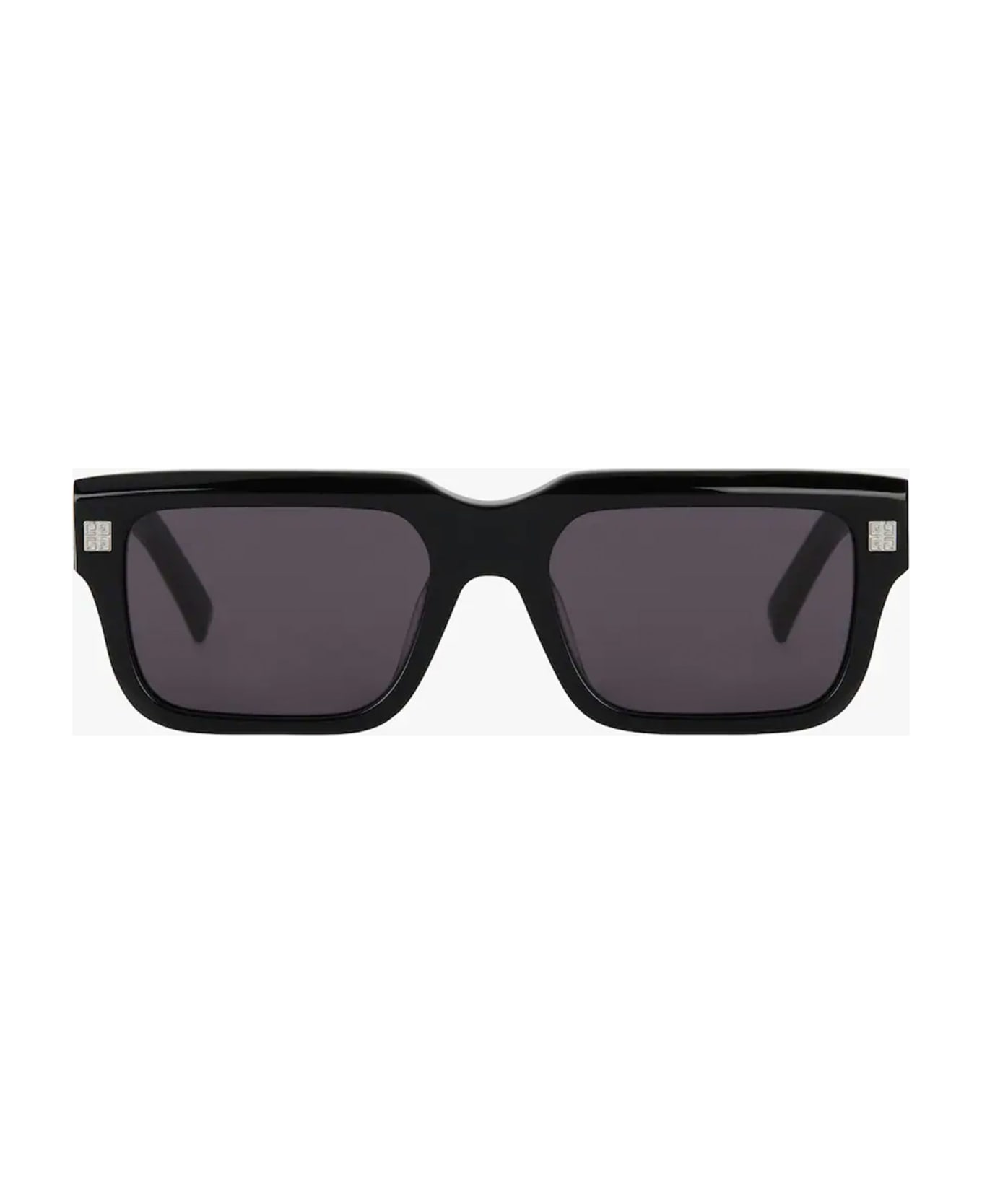 Givenchy GV DAY - BLACK (GV40039U-01A) are rectangular sunglasses made in Italy. They feature black acetate structure, front Givenchy emblems, laser-engraved logo on temples, and grey lens with 100% UV protection.