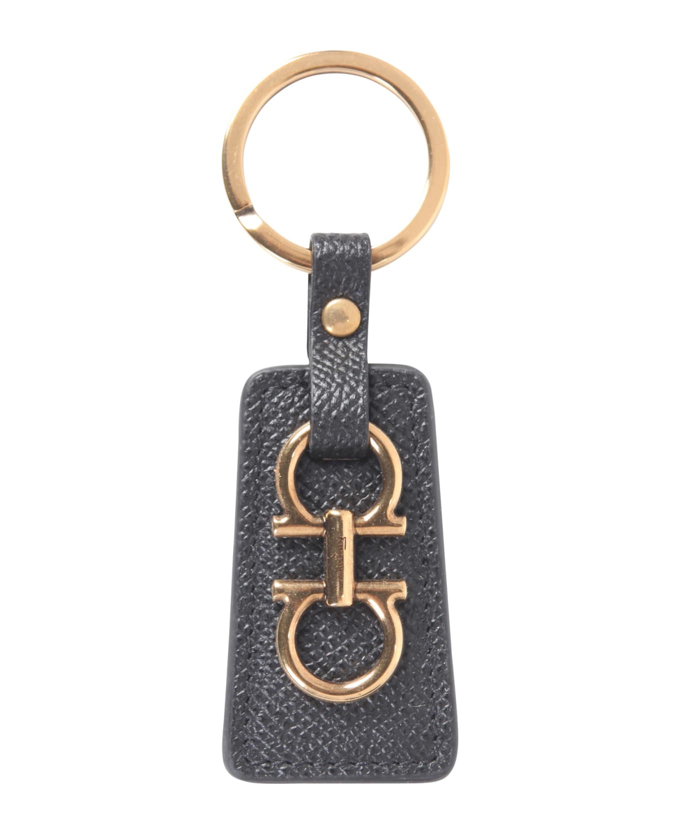 - Key Ring- Leather Tag With Hooks- Gold-finish Metal Parts- 100% Leather- Made In Italy