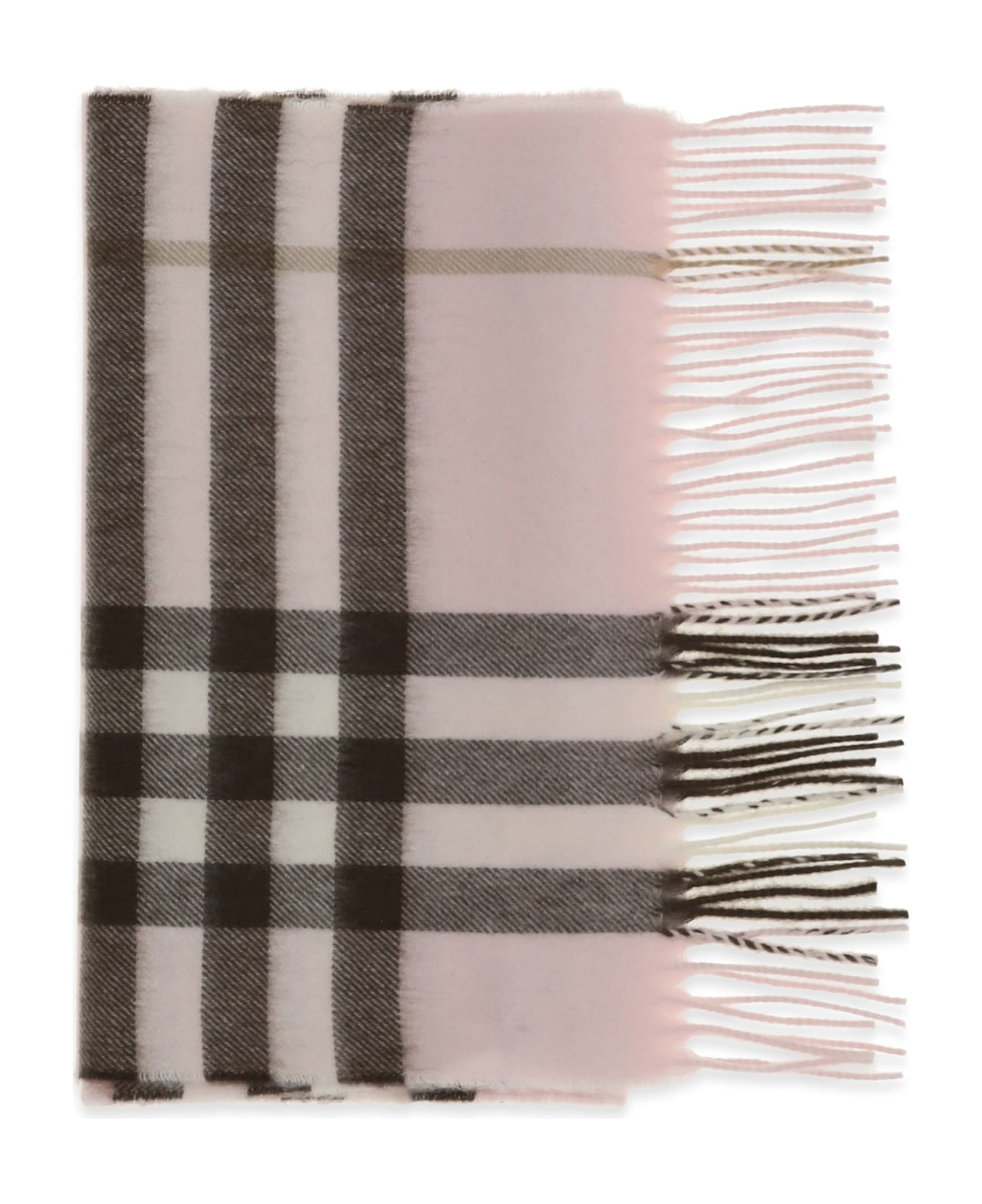 The check cashmere scarf by burberry is an elegant and soft accessory with a rectangular design that easily adapts to any look. the fringes at the ends add a touch of style and movement, while the quality of the cashmere guarantees comfort and warmth. perfect for completing a refined outfit with the unmistakable burberry style. Composition: 100% % Kashmir/capra Hircus