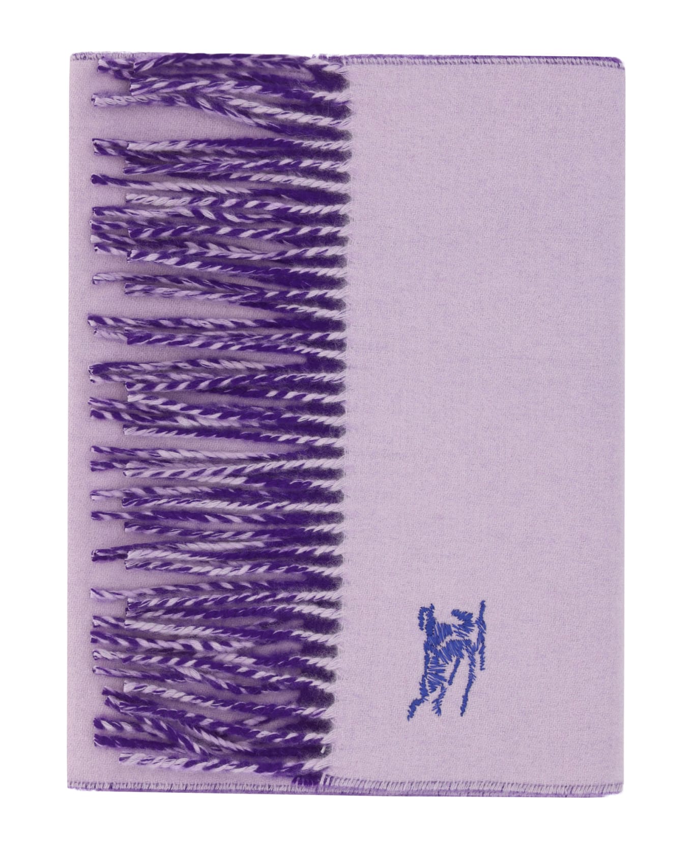 Cashmere scarf by burberry, two-tone paneled design, contrasting brand's iconic the equestrian knight logo on front, frayed hems. Composition: 100% % Kashmir *sost Con Ws*