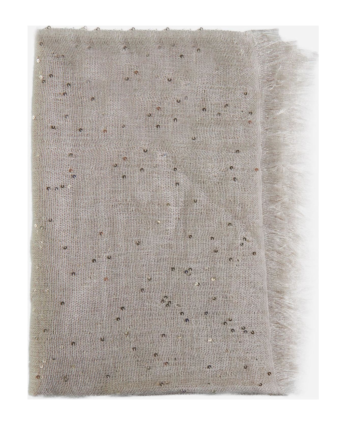 Brunello Cucinelli's beige cashmere and silk blend stole featuring all-over sequins and fringed edges. Composition: 70% cashmere 30% silk