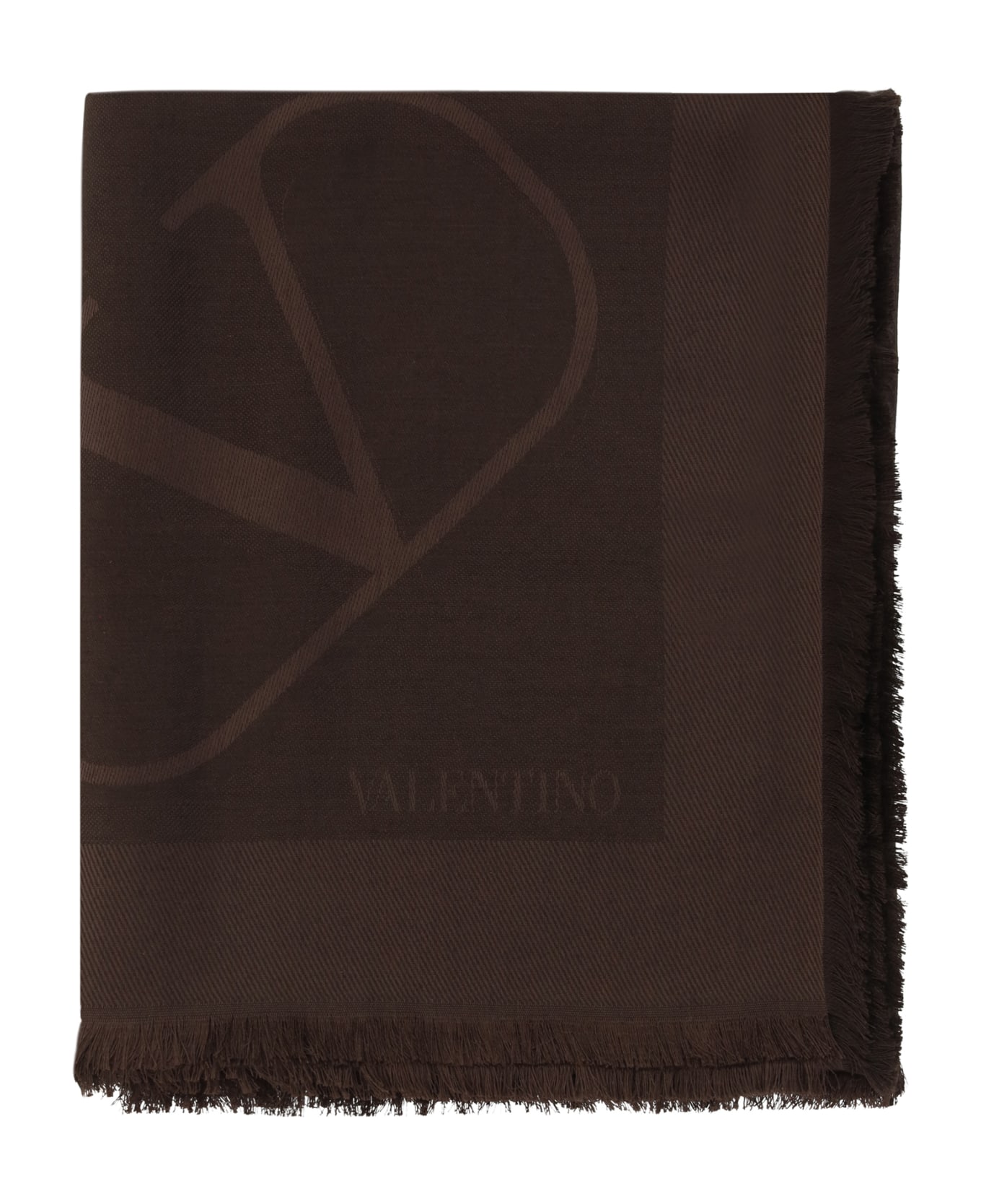 Silk shawl by valentino garavani, frayed hems, iconic branded vlogo printed on front and contrasting back, embroidered brand signature. Composition: 60% % Silk, 40% % Wool