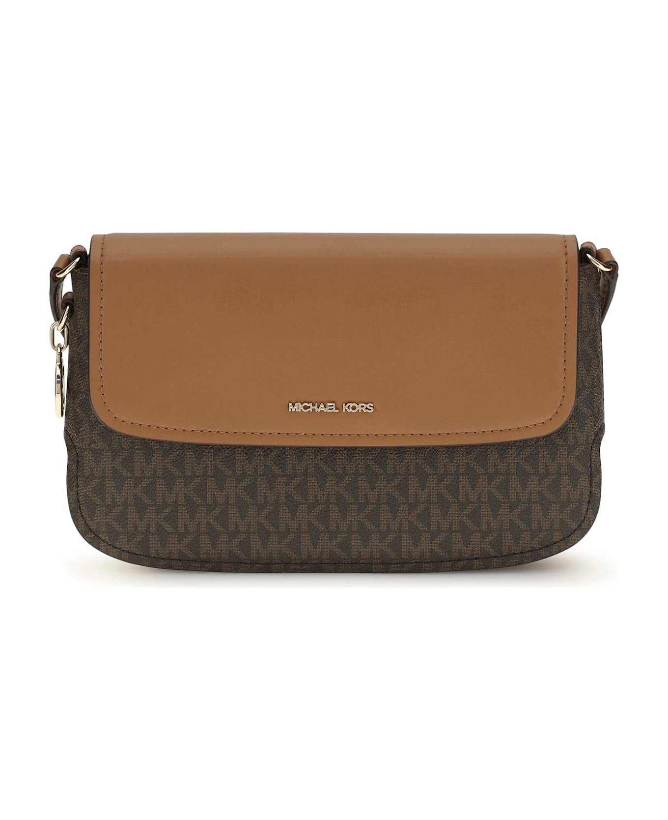 The alice shoulder bag by michael kors is crafted from coated canvas and features an all-over logo print, embellished with a metallic lettering logo on the flap. the adjustable leather shoulder strap ensures comfort and versatility, while the magnetic button closure under the flap provides security. the metallic logo detail on the side adds a distinctive touch, while the lined interior has a zippered pocket for organizing personal items. an elegant and practical accessory, perfect for any occasion.